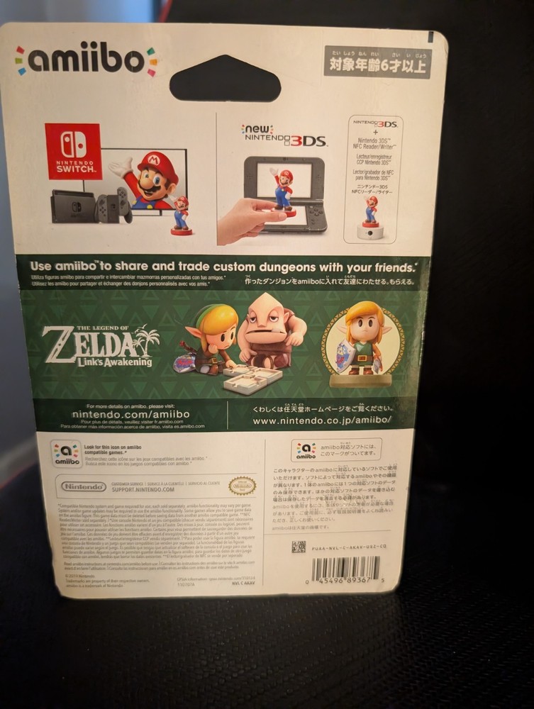 The Nintendo amiibo Legend of Zelda: Link's Awakening - Link is a brand new and sealed character figure featuring Link from the popular video game franchise, The Legend of Zelda. This product is compatible with various Nintendo consoles such as the Nintendo Switch, Nintendo 2DS, Nintendo 3DS, and Nintendo Wii U. As part of the amiibo product line by Nintendo, this accessory allows players to bring the iconic character Link to life in their video games, offering a unique and interactive gaming experience.