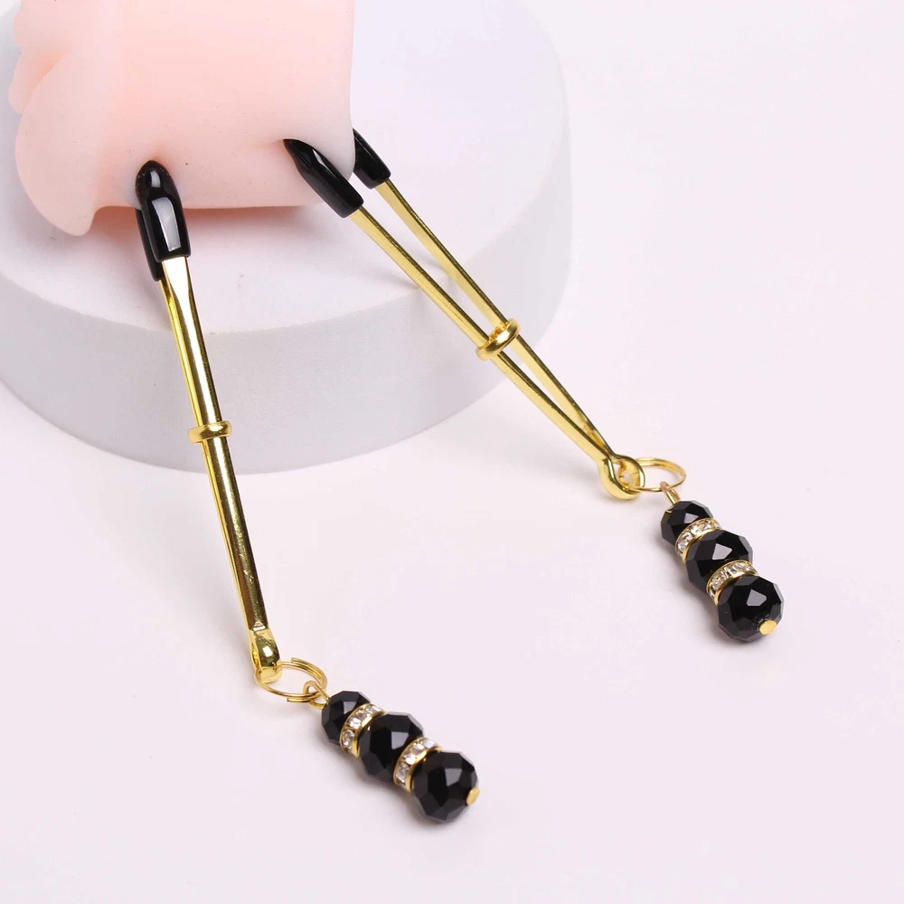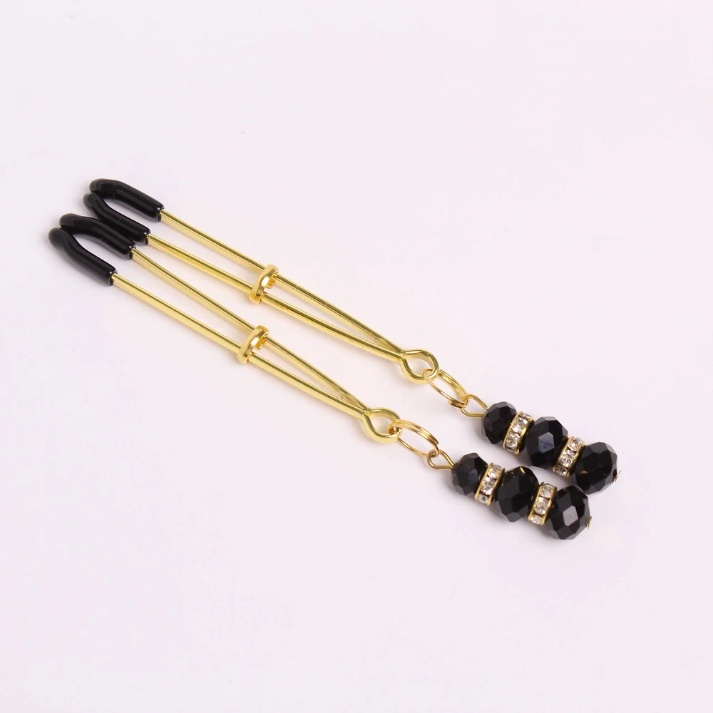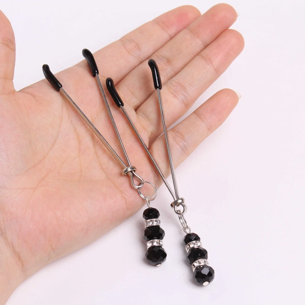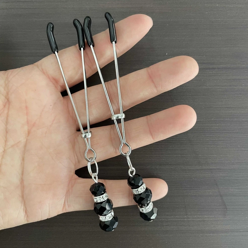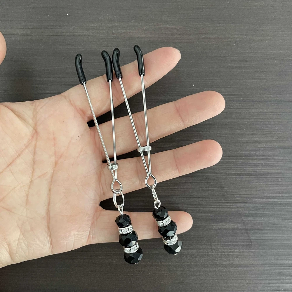 Private Shipping Feature: Two sensual Breast clamps with artificial jewelry. These Breast clamps come with rubber tips to protect the nipple Specification: Item:Breast Clamps Material: Metal & Rubber Size: 10.5cm weight: 14g Package List: 2 x Breast Clamps(1 Pair)
