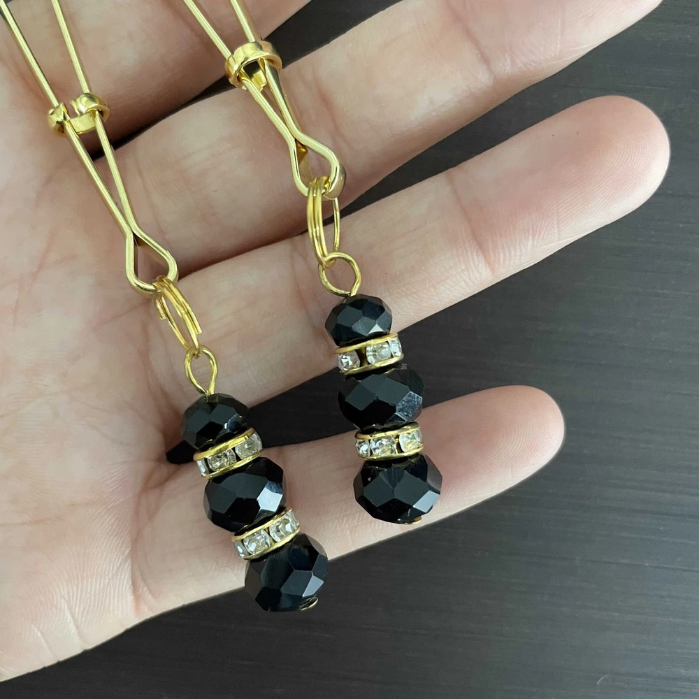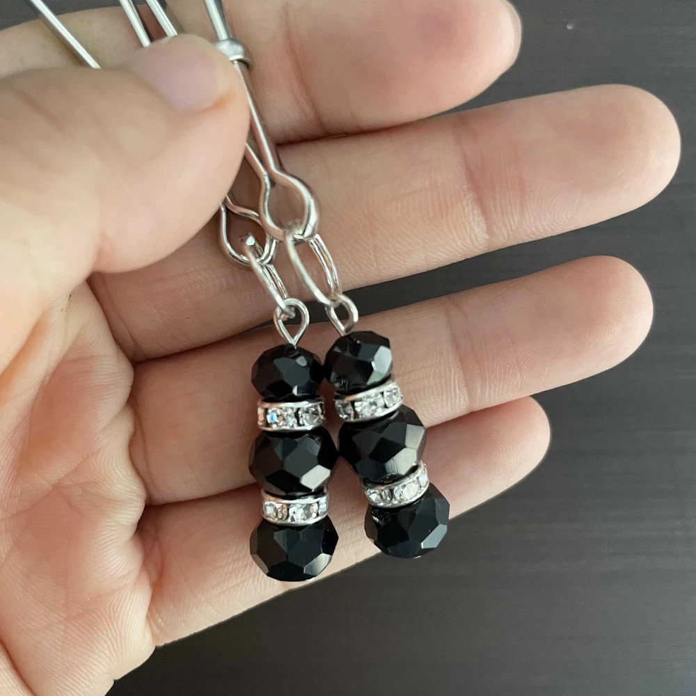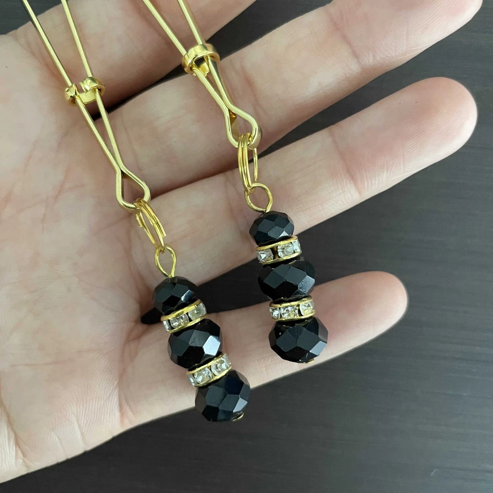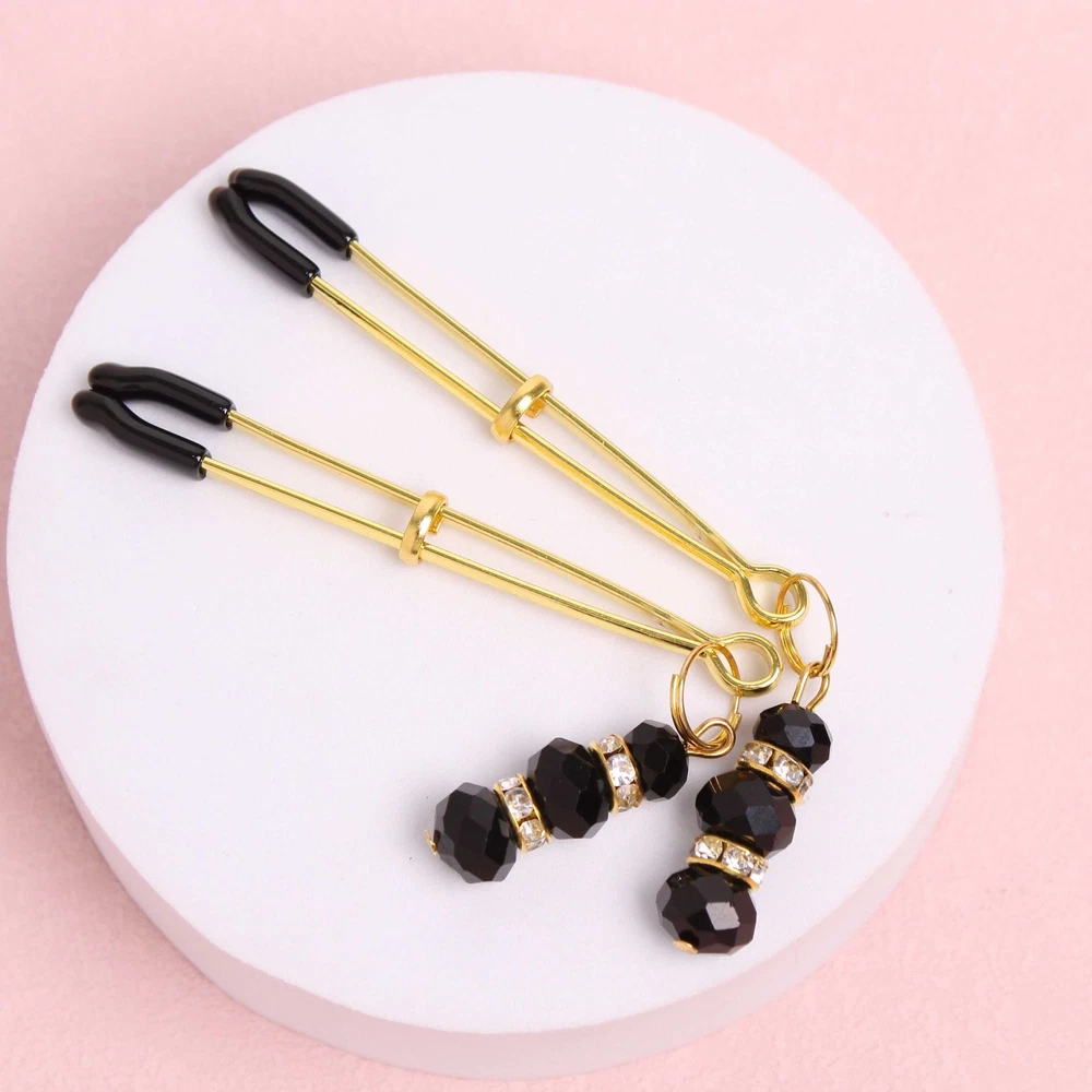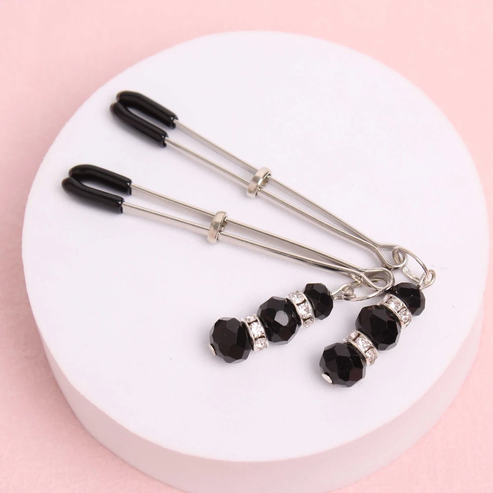 Private Shipping Feature: Two sensual Breast clamps with artificial jewelry. These Breast clamps come with rubber tips to protect the nipple Specification: Item:Breast Clamps Material: Metal & Rubber Size: 10.5cm weight: 14g Package List: 2 x Breast Clamps(1 Pair)