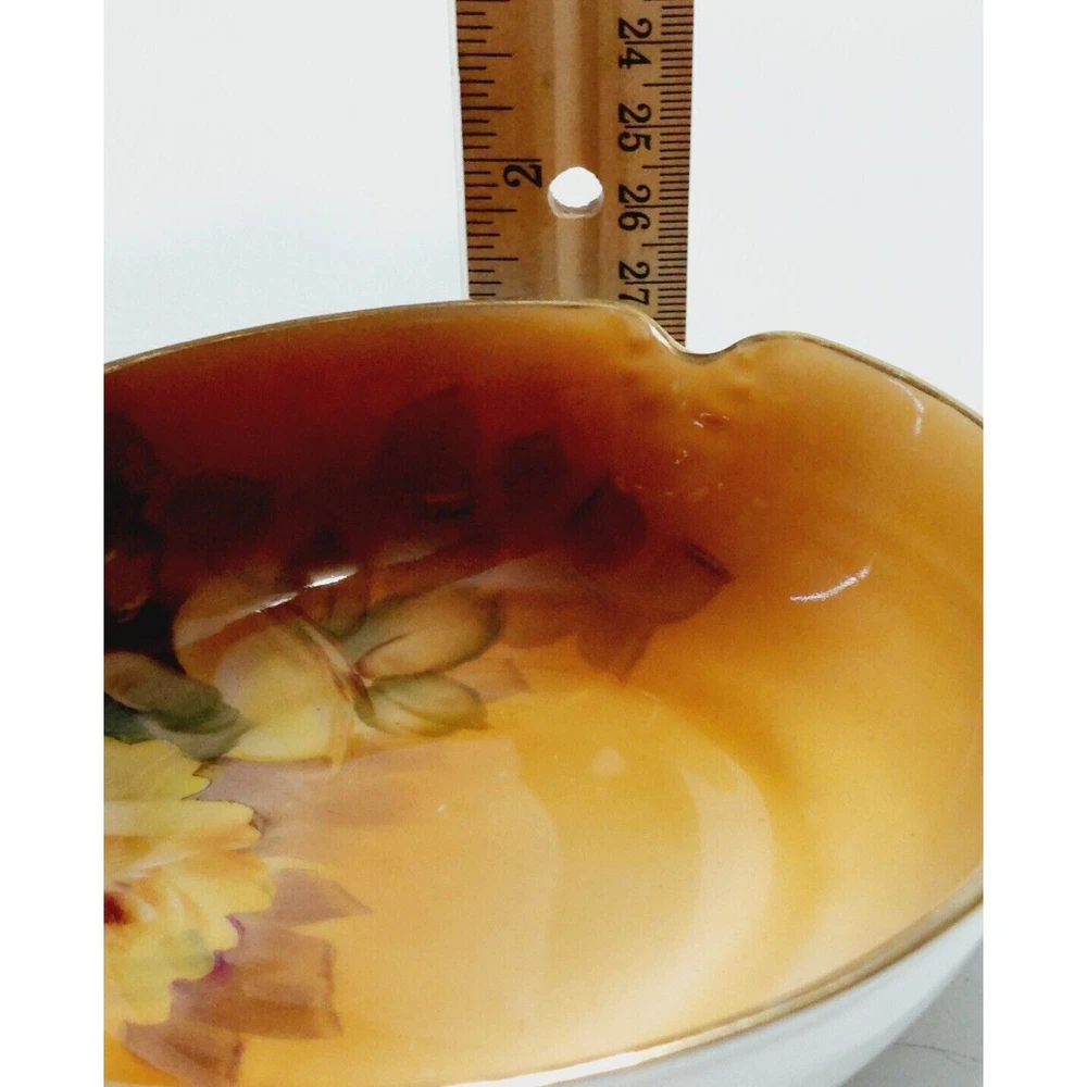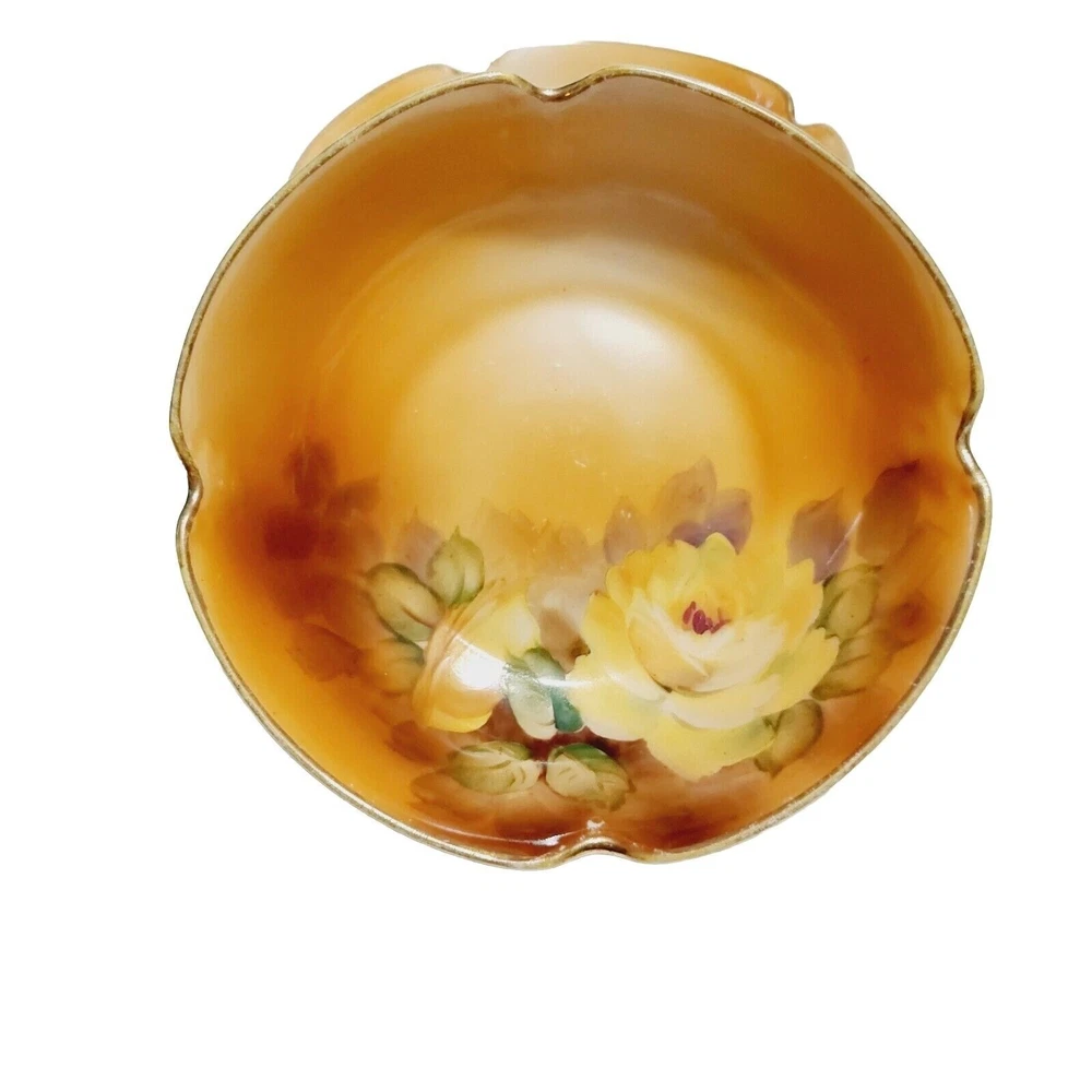 Nippon Bowl Porcelain Brown Yellow Roses Crimped Edges Hand Painted Set Of 2