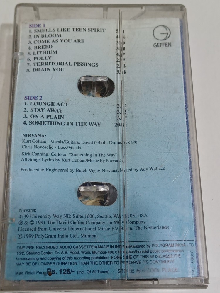 Nirvana Kurt Cobain Nevermind Rare Orig Cassette Tape India Indian 2000 Inlay