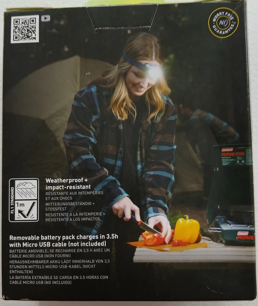 Brand new, factory sealed. Ships quickly to you by the next business day. Radiant RH1 PowerSwitch Rechargeable Headlamp combines first-in-class LED technology with lightweight portability, creating the ultimate all-purpose headlamp. Featuring spot and flood beams with independent dual-button control, you can select flood modes for soft area lighting, spot modes to shine a focused work light, blast mode for a combination of the two, or red mode to preserve night vision. Fueled by PowerSwitch technology, RH1 runs on its included rechargeable, removable battery pack or with 3-AAA alkaline batteries (not included). Weatherproof and drop-tested up to 1 meter, the durable body tilts up to 90° and casts a 95-meter beam, running up to 18.5 hours on low. Designed for hobbies, professions, emergencies, and adventures, this headlamp recharges in 3.5 hours via micro USB cable (not included) and features lockout mode to prevent accidental battery drain. PRODUCT DETAILS 600 lumens Six modes (plus lockout): Spot: low, high, blast Flood: low, high, red Blast mode combines high spot + high flood beams Red mode illuminates while preserving night vision Headlamp turns on on in low mode for easy eye adaptation PowerSwitch dual-power source: runs on included rechargeable Lithium Ion battery or 3-AAA alkaline batteries (not included) Water resistant (IPX4) Impact resistant (drop proof to 1 meter) Textured dual-button design allows independent operation of spot and flood modes Headlamp body tilts 90° for easy beam adjustment Lightweight body weighs only 82g (2.89oz) Comfortable, high-quality adjustable strap is removable + reflective Red mode is activated by pressing and holding flood button for 2 seconds Lockout mode is activated/deactivated by pressing and holding either button for 5 seconds Removable battery pack recharges in approximately 3.5 hours using micro USB cable (not included) Indicator light turns from red to green when fully charged