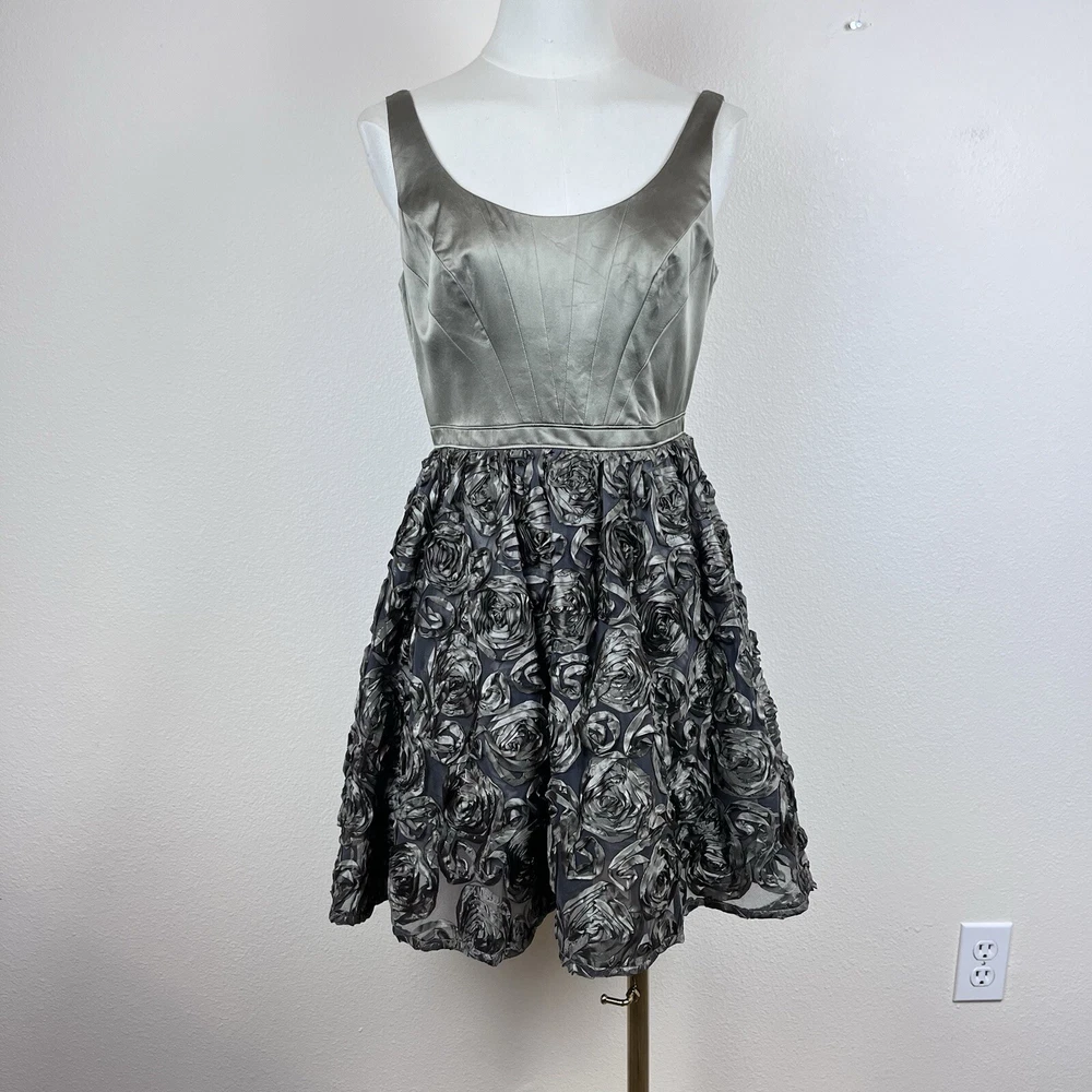 Niteline Womens Dress Silk Bodice Polyester Skirt 3D Flowers Fit and Flare Party Dress Cocktail Y2K Good used condition Measurements in photos. Size 4P