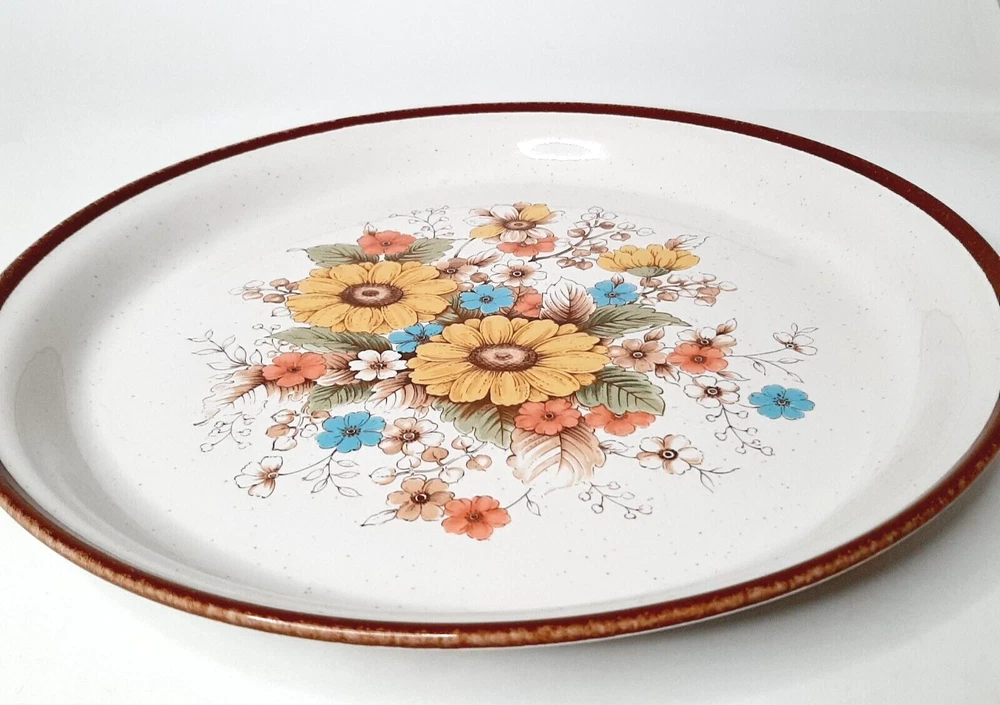 Nitto Heather Stone 12.5" Serving Plate Old Garden 9804 Stonewear Platter Japan Great condition with little to no signs of use or wear