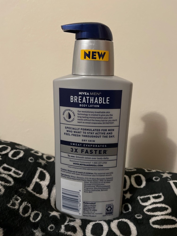 Department:MenExpiration Date:February 2025Formulation:LotionUPC:072140027278Volume:13.50 Fl Oz (Pack of 1)Body Area:Full BodyEAN:0072140027278gtin13:072140027278ISBN:0072140027278Form:LotionMain Purpose:MoisturizerModel:Does not applyIngredients:Glycerin, Shea ButterMPN:Does not applyFeatures:Dye free and paraben freePackaging:Packaging May VaryColor:GREYType:Body LotionBrand:Nivea Men