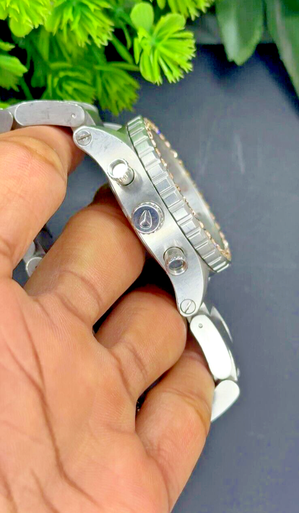 The Nixon 42-20 Chrono watch features a luxurious design with a silver stainless steel band and a red gold and silver case color combination. The white dial complements the overall sporty yet elegant look, suitable for both casual and formal occasions. This unisex quartz wristwatch boasts water resistance, a chronometer, date indicator, and a rotating bezel, catering to those who value functionality and style in their timepiece. With a 42mm case size and analog display, the Nixon 42-20 offers a versatile and reliable accessory for daily wear.