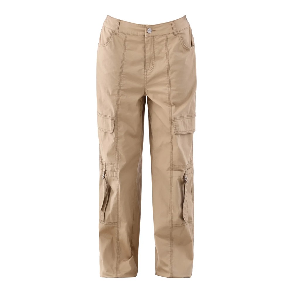 No Boundaries Girl's Cargo Parachute Pants, 29” Inseam ,Hot Cocoa Size L (12-14) Comfortable Material : Made from 98% cotton and 2% spandex for a comfortable and flexible fit. Easy Care : Machine washable for convenient maintenance. Relaxed Fit : Features a relaxed fit with a high rise and 29-inch inseam for a flattering silhouette. Secure Closure : Button closure with zip fly and half-back elastic waistband for a secure and adjustable fit. Ample Pockets : Includes two front pockets, two cargo flap pockets, and two cargo pockets with D-ring closure for ample storage. Stylish Details : Front seam detail and tie accent at the hem add a trendy touch. Versatile Design : Wide leg with a bungee at the hem for a modern and versatile look.