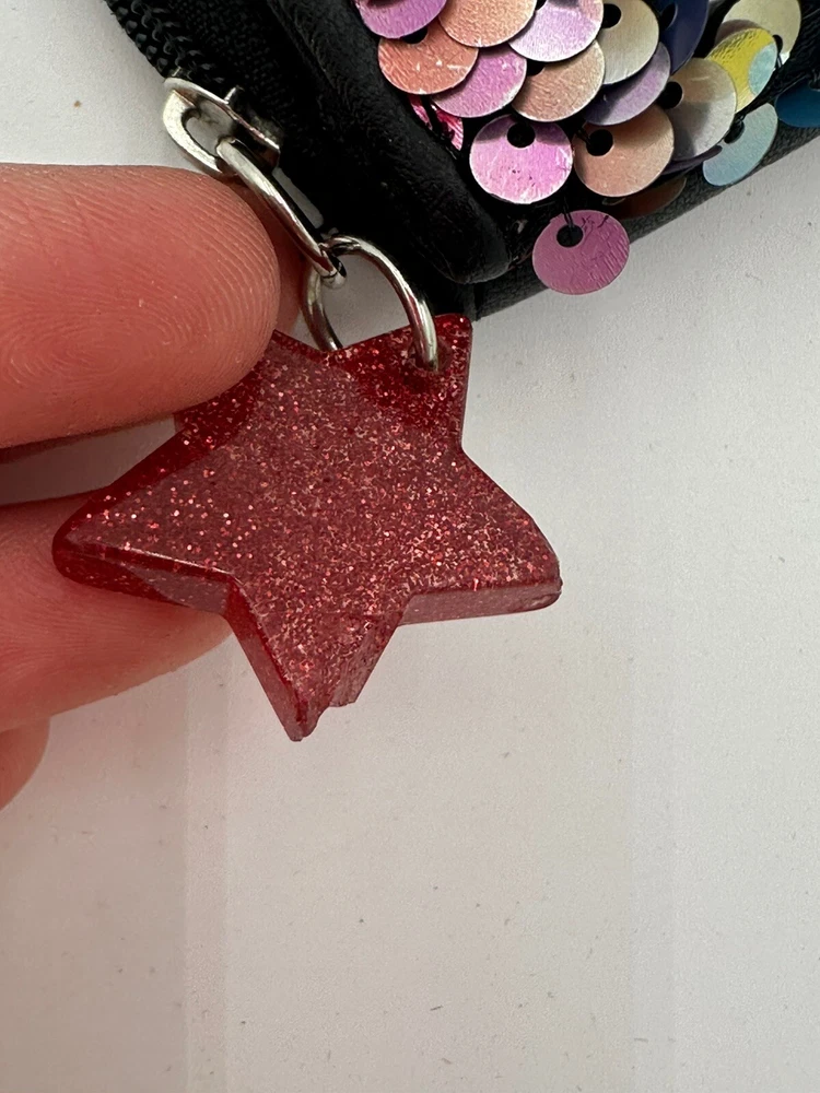 Star keychain slightly chipped see pics. This No Boundaries wallet is the perfect accessory for any woman who loves a little sparkle in her life. The wallet features a colorful rainbow design with sequin accents and comes with a star key chain for added flair. The wallet is brand new and in excellent condition, ready to be used by its new owner. It is perfect for storing all of your important cards and cash, while the sequins add a fun and unique touch to your everyday look. Don't miss out on this stylish and practical wallet, perfect for any occasion.