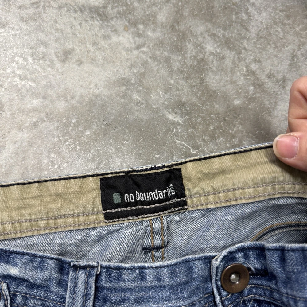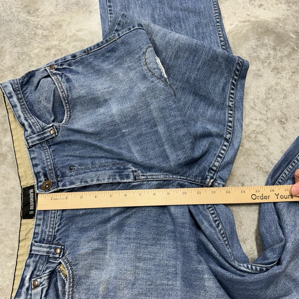 No Boundaries Y2K Baggy Jeans Mens 38x32 Wide Leg Skate Hip Hop Blue Distressed