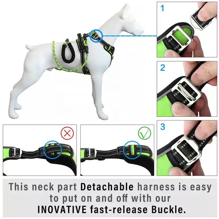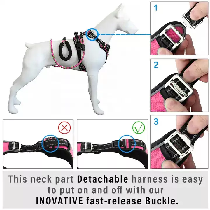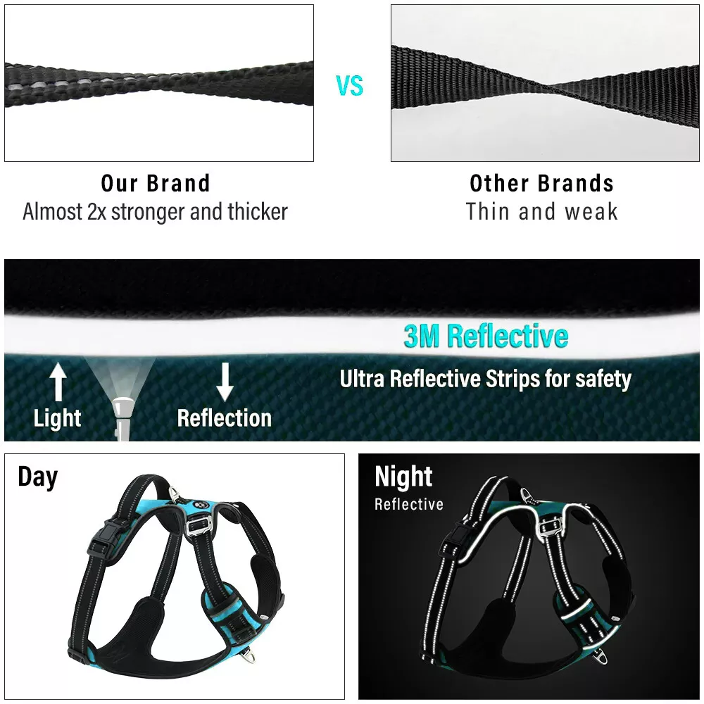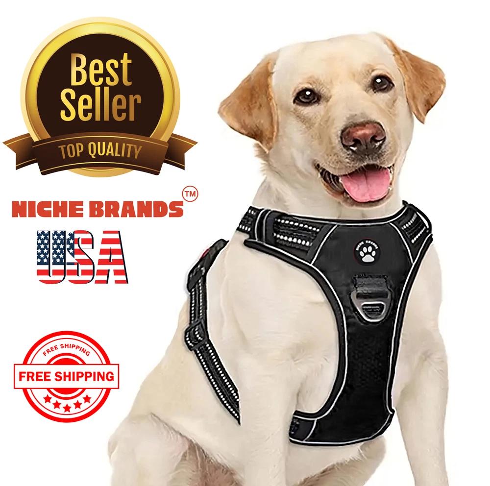 Niche Brands™ No-pull No-Choke dog harness is the ultimate solution for dog owners who want to keep their furry friends safe and comfortable while walking. Made with high-quality materials and featuring a unique design , this harness distributes pressure evenly across the chest and back to prevent choking and pulling on your dog's neck. The padded chest panel and adjustable sizing ensure a secure and comfortable fit for dogs of all sizes, while the reflective strips keep your dog visible in low light conditions. The easy-to-use buckle and leash attachment make it a breeze to put on and take off, even for the most active dogs. Adjustable Weight Pulling Harness Dog Harnesses Best New Year Gift you could give to your Dog Holiday SALE - 5% Leash needs to be purchased separately. 🐶 [ NO PULL - CHOKE RESISTANT ] - NICHE BRANDS Designer non-pull adjustable dog harness with handle features RUSTPROOF Zinc Alloy dual metal D-rings, on both sides of the dog vest. The front D-Ring helps redirect your dog's forward motion, and the back ring is perfect for a casual dog walk, jogging, hiking, training. The four Adjustable straps fit various dogs with different body shapes. With 2 easy buckles on belly straps and 1 more lockable quick release buckle on the neckline, you don’t need to slip over the dog’s head to adjust the straps all the time. 🐶 [ Pet-friendly REFLECTIVE Material ] - Our durable dog vest is made of 1200D Oxford Fabric with sturdy stitching, suitable for long-time use. Breathable padded mesh design keeps air circulation around your dog’s body and protects your dog’s skin during outdoor activities. Reflective/Lighted straps guarantee you a safe and wonderful late-night walk 🐶 [ FIT for All ] - The harness comes in different sizes and fits SMALL/MEDIUM/LARGE/XL size fur friends. Refer the sizing guide for neck and chest girth and get the purrfect size for your furry friend. Large Dog Harness fits even the fluffiest dog 🐶 [ EASE TO USE AND SECURE LOCKING ] - The dog harness with simple design, Front clips and quick snap buckles which make it easy to put on and take off. Locking feature on both snaps makes it more secure, 100% ensures NO accidental detachment. 4 easy size adjustors at neck and chest for easy adjusting to fit your dog perfectly, even with some room of growth. Perfect training vest for daily walking, running, hiking, training, hunting, outdoor adventure and more! 🐶 [ EASY CLEANING ] - Harness material is dust resistant and Machine washable and hence easy for daily use. All metal accessories are rust-proof and provides long term Durability. 🐶 [ DURABILITY ] - Made of durable nylon webbing, enhanced high density nylon oxford, breathable mesh lining and strong accessories including buckle, size adjustors making it the best harness for dog. 🙏 Customer Service - Our customers’ amazing shopping experience is always our Priority. If you have any problems while using our products, please feel free to let us know. Our customer service will effectively solve your problem in 24 hours. Niche Brands pet supplies is a company that is passionate about providing high-quality, unique and innovative products for pets. Our mission is to create a brand that pet owners can trust and rely on for their pet's needs. We understand that every pet is different and has unique needs, which is why we offer a wide range of products that cater to different lifestyles and preferences. Product Description Package includes: 1 x No Pull Dog Pet Harness Adjustable Control Vest Dogs Reflective S M Large XL Shipping Information: Free shipping - Your item Ships Same Day to 1 Business Day