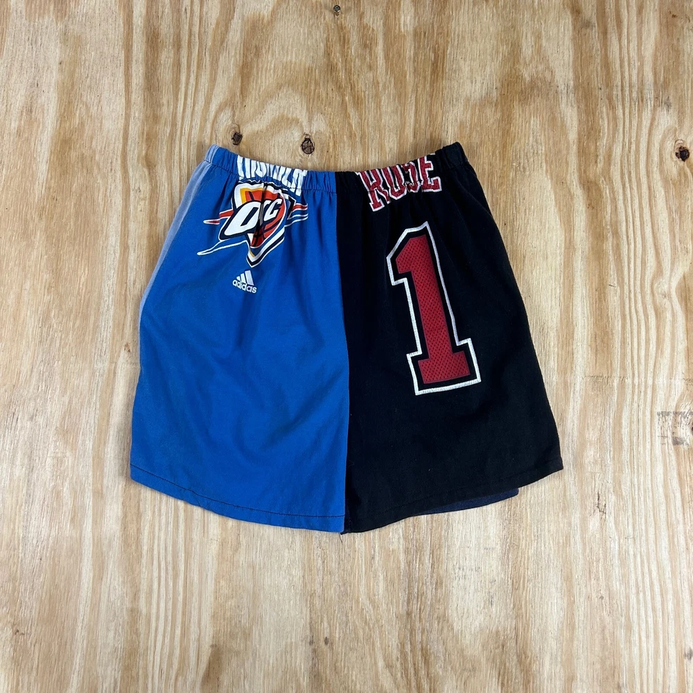 Get ready for the game with these No Tag Retro Basketball Shorts featuring the OKC Thunder vs LA Lakers in blue and black. These shorts are perfect for any NBA fan and are available in size 24 for men. The 8 oz capacity ensures you stay comfortable during the game, while the unknown player and team add to the excitement of the match. The shorts are officially licensed and made from high-quality materials, ensuring you get the best quality for your money. Whether you're watching the game at home or at the arena, these shorts will make you stand out as a true fan. Get your hands on these No Tag Retro Basketball Shorts and show your support for the OKC Thunder vs LA Lakers. SKU: 60034