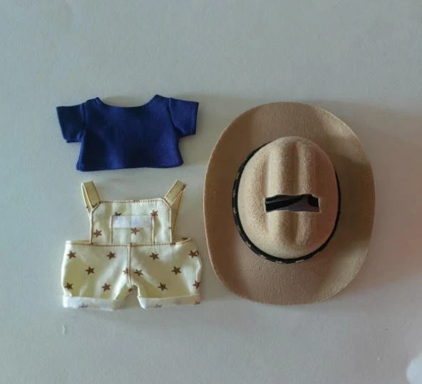 Franchise: Monster Type: Set Year Manufactured: 2025 UPC: Does not Apply Brand: Unbranded Features: labubu Theme: TV, Movie & Video Games Material: Plush gtin13: Does not Apply Color: Yellow Character: POP Packaging: Three piece set: hat+shirt+overalls Occasion: All Occasions Number in Pack: Three piece set: hat+shirt+overalls Genre: Movie & TV Country of Origin: China