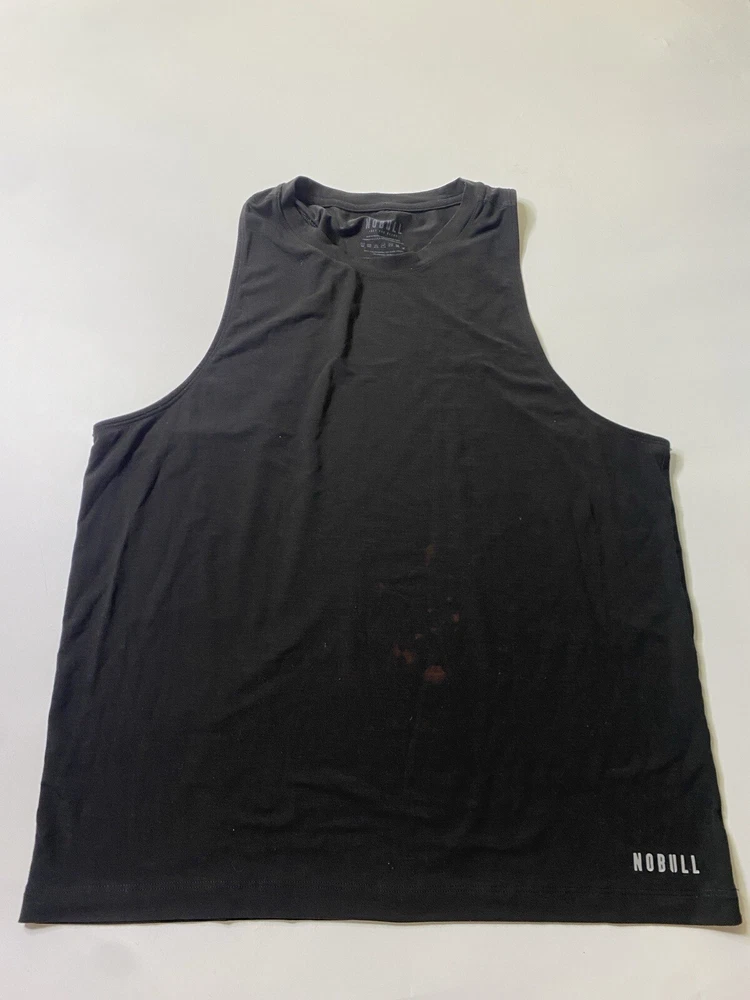 NoBull Shirt Men's Large Black Muscle Tank Top Gym Activewear Athletic BLEACH