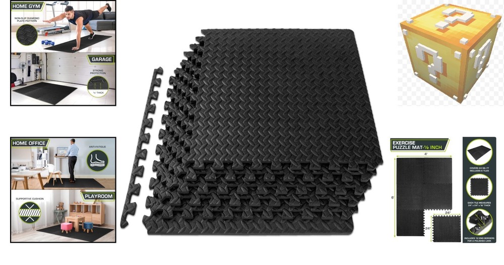 Noise-Reducing EVA Exercise Puzzle Mat - Lightweight and Easy Assembly, Black ‹ › ‹ › ‹ › ‹ › ‹ › ‹ › ‹ › ‹ › Noise-Reducing EVA Exercise Puzzle Mat -Lightweight and Easy Assembly -Color: Black Features: Durable, non-skid flooring that protects your floors while providing a comfortable workout area. High-density EVA foam for excellent support and cushion, free from toxic phthalates. Water-resistant and noise-reducing design for easy cleaning. Each tile covers 24 in x 24 in x ½ in, with a total of 6 tiles covering 24 square feet. Interlocking foam mats are easy to assemble and disassemble for quick storage. Ideal for flat, hard surfaces including garages, home fitness rooms, and children's play areas. Benefits: Absorbs impact and noise for a quieter workout experience. Soft surface for increased comfort during exercises like yoga, push-ups, and weightlifting. Non-toxic and waterproof material ensures safety and durability. Easy to clean with just warm water and mild soap. Provides a polished look with end borders for a clean, finished appearance. Perfect for various activities including CrossFit, Pilates, MMA, and gymnastics. Why choose our Noise-Reducing EVA Exercise Puzzle Mat? Transform your fitness routine with the Noise-Reducing EVA Exercise Puzzle Mat, designed for comfort and functionality. Made from high-density EVA foam, this mat offers superior support while protecting your floors. Its lightweight interlocking tiles ensure quick assembly and easy disassembly, making it effortless to store your workout space when not in use. Whether you are exercising, practicing yoga, or creating a safe play area for children, this versatile mat delivers the perfect combination of durability and softness. Experience the difference in comfort and performance – order your Noise-Reducing EVA Exercise Puzzle Mat today! Shipping Free & Fast Shipping - We offer free shipping to most of the USA with a normal delivery time of 3-7 days. However, due to the current situation, additional delivery time (up to 3 weeks) may be required for some items. Alternative Carriers - We may use alternative carriers (e.g. USPS, FedEx, UPS, etc.) to ensure your package arrives safely and on time. Due to the use of multiple carriers, we are unable to provide a tracking number automatically. Handling Time - Orders are processed and shipped within 1-2 business days of receiving cleared payment. Shipping Restrictions - Shipping to Alaska, Hawaii, Puerto Rico, Guam, and other US territories may incur shipping charges or delivery restrictions. Please contact us before ordering, or your order can be refunded/cancelled. State Restrictions - There may be restrictions based on your state of purchase. For example, certain items may not be shipped to California due to state regulations. Contact for Tracking Updates - If you require tracking updates or have any concerns about the delivery of your order, please feel free to contact us, and we will be happy to assist you. Return 30-Day Hassle-Free Returns - We want you to be completely satisfied with your purchase. If you are not, you can return the item within 30 days of receiving it for a full refund or exchange. Easy Return Process - To start a return, simply contact us and we will provide you with a prepaid return shipping label and detailed instructions. Restocking Fee - There are no restocking fees for returns. However, the buyer is responsible for return shipping costs if the return is not due to a seller's error. Refund Processing Time - Refunds will be processed within 5 business days of receiving the returned item in its condition. Payment We accept all major credit cards, PayPal, and Apple Pay for your convenience. Your payment information is secure and encrypted to ensure a safe and seamless transaction. Please complete your payment within 3 days of purchase to avoid any delays in shipping. Feedback Your feedback is extremely important to us. We strive to provide the best products and customer service possible. If you are satisfied with your purchase, please take a moment to leave us a positive review. If you have any concerns or issues with your order, please contact us before leaving negative feedback. We are committed to resolving any problems and ensuring your satisfaction. Contact Us If you have any questions or concerns, please feel free to out to our customer support team. You can contact us through the eBay messaging system. We are available Monday to Friday, 9:00 am to 5:00 pm EST, and we will do our best to respond to your inquiry within 24 hours. Buy it now and enjoy a pleasant shopping experience! Model: Exercise Mat Size: 24 in x 24 in x ½ in Item Height: Exercise Mat Item Length: Exercise Mat Item Weight: 5 pounds Shape: Square Item Diameter: 24 in Unit Quantity: 1.0 count Material: EVA,Ethylene Vinyl Acetate Sport/Activity: Gym & Training,Yoga,Home Workout,Pilates,MMA,Gymnastics,Children Play Areas Features: Non-Slip,Water-Resistant,Noise-Reducing,Impact Absorbent Care Instructions: Apply warm water and dish soap Set Includes: 6 tiles with end borders Type: Exercise Puzzle Mat Number of Items in Set: 6 Color: Black