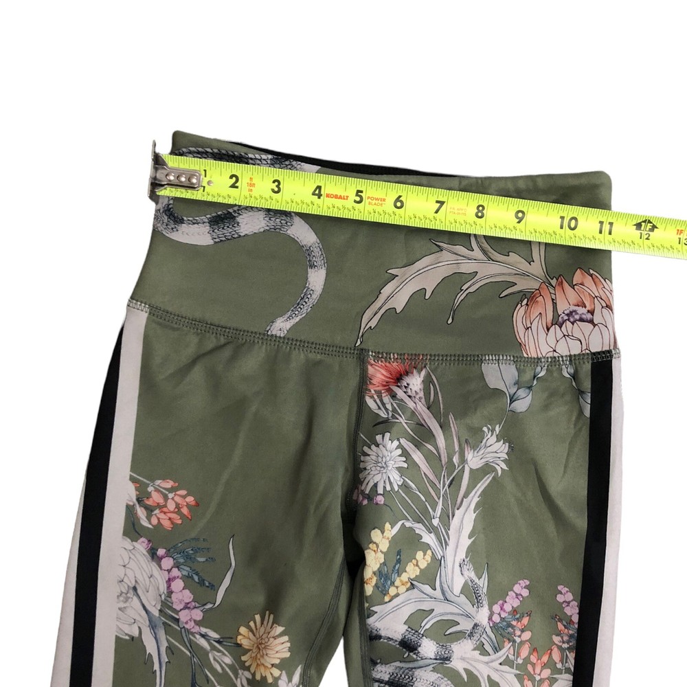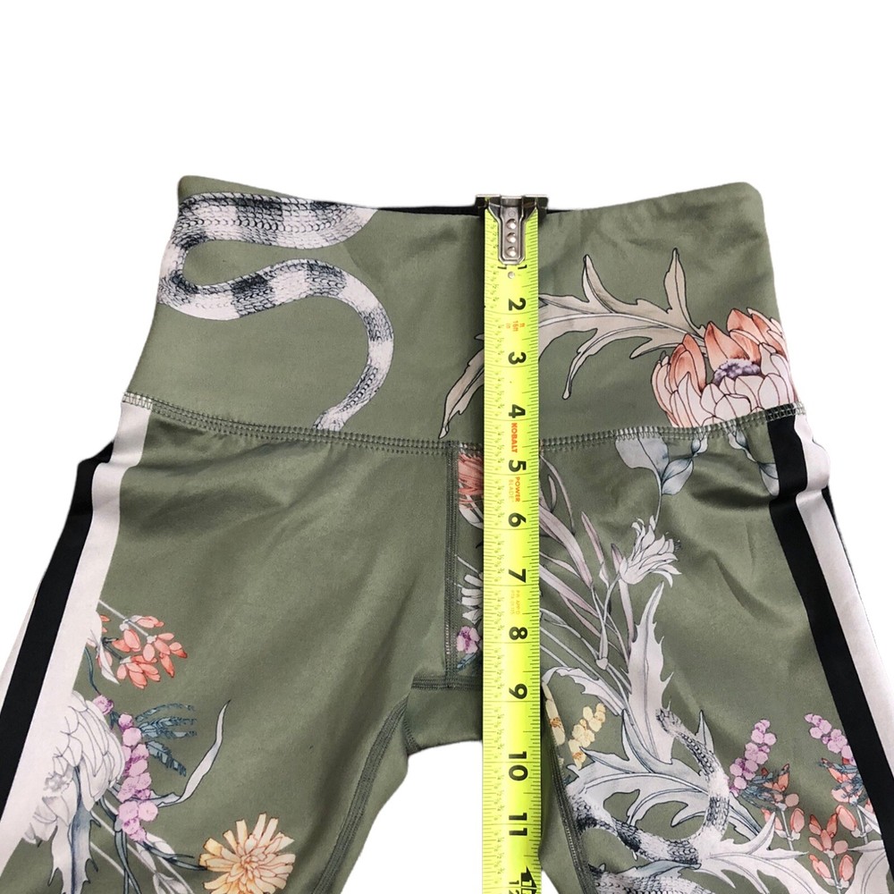 Noli Yoga Mid Rise Full Length Leggings Size XS Green Floral Snake Print. Super soft, ankle length, thick quality material. Olive light green background with floral/snake print. Ideal for any workout or activewear. Excellent condition! Item is clean! No odors! No damage! Approximate Measurements in photos! Thank you for stopping by!