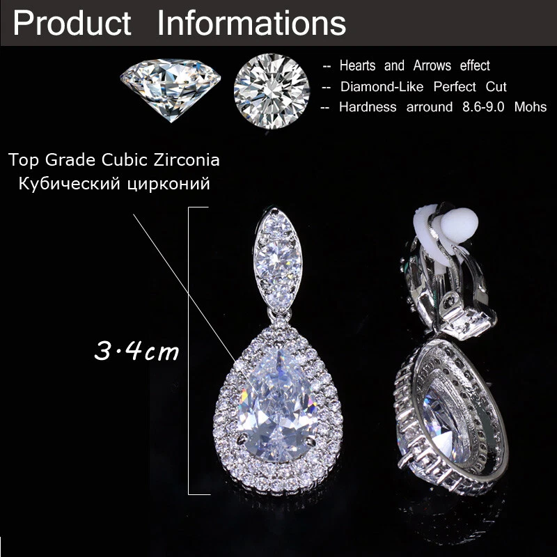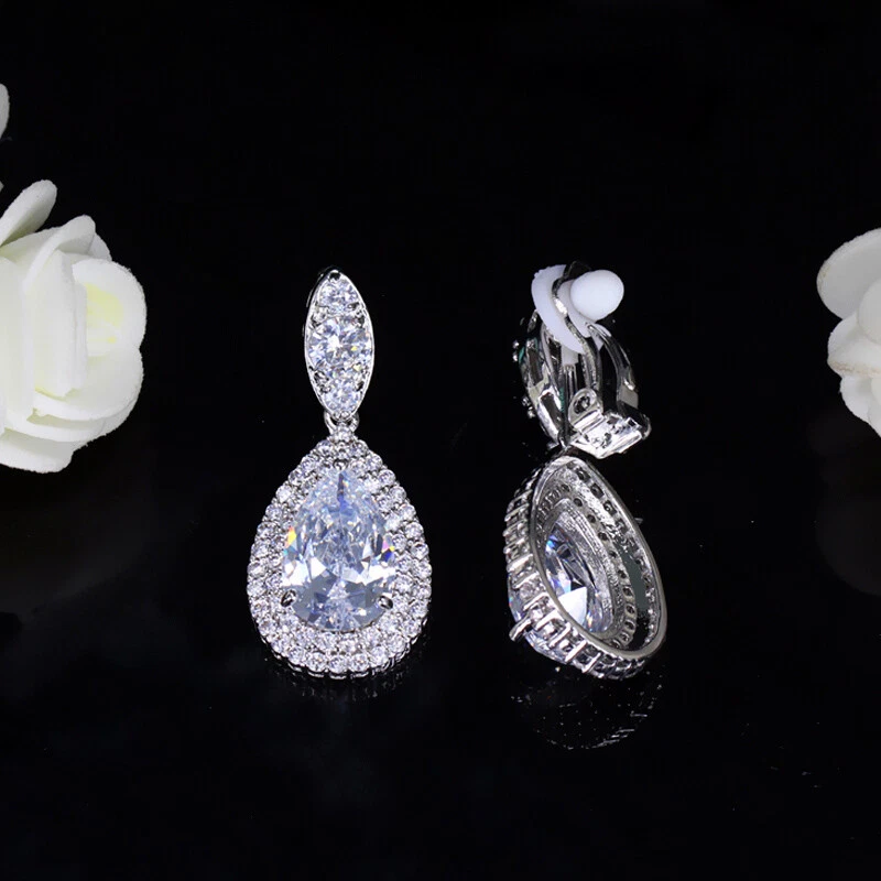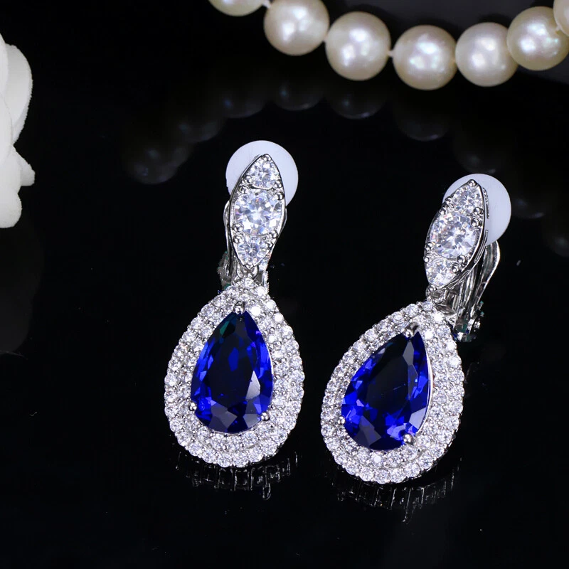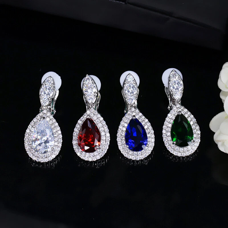 Non Pierced Clip On Water Drop Earrings Silver Plated Blue Zircon Bridal Jewelry There’s an old saying that: Jewelry is woman’s best friend. And one appropriate luxury jewelry helps to spice up your charm and beauty. And here’s the reason why you choose us: ★ We adopts high-grade Cubic Zirconia, which displays pure and fascinating color; ★ All our items are Elaborate, Gold Plated (white gold plated/yellow gold plated/black gold plated), by which the texture is smooth and with fancy look, and will be appropriate for so many occasions; ★ Our items are with Exquisite Design, which shows your excellent taste, and could catch people’s attention easily. ★ Ideal gift for mother, wife, girlfriend, daughters, brides, bridesmaids, ect. Specification Type: Clip On Dangle/Drop Earrings Stone Material: Cubic Zirconia Base Metal Material: Brass Metal Material: Silver Plated Shape: Water Drop Color: White, Blue, Red, Green Suitable Occasion: Daily, Holidays, Party, Engagement, Wedding, Anniversary, Valentine’s Day, Carnival, Performance, ect. Package Includes 1 Pair of CZ Clip On Drop Earrings Please note: *Please bear in mind that there might be 1~2cm difference due to manual measurement. *Our digital images are as accurate as possible. However, different monitors may cause colors to vary slightly. *We offer after-sale service, if there is any item problem, please feel free to contact us via eBay message first, your kind understanding is much appreciated. About Us Payment Shipping Returns Contact us About Us Topjewel33 is a newly-established online store which dedicates to provide excellent luxury jewelry products, such as earrings, rings, necklaces, bracelets, brooches, hair accessories, and high grade jewelry sets. We target worldwide market, and we strive for offering you unbeatable low price and satisfied customer service. Payment We accept PayPal payment only. Payment must be received within 7 days from the date of purchase. Shipping We do hope all our customers could receive the order asap, so normally, the order will be sent out within 2 working days. And as the delivery is handled by the third party, sorry that we could not guarantee which date you could receive the package. And sometimes the delivery might be a little bit delay, especially in high volume or holiday seasons. However, please don’t worry and feel free to contact us via eBay message, and we will do our best to help. And we sincerely apologize for any inconvenience may cause. Sometimes custom tax might be required, and we are afraid that it will be covered by the buyers, thank you for kind understanding. Returns We provide 30 days money back return policy. And if you have any problem with the item, please make sure the item is in the original package and feel free to contact us via eBay message first, thank you for kind understanding and cooperation. Contact us We offer customer service, if you have any problem with the item before/during/after the purchase, please feel free to contact us via eBay message, and we will get back to you asap. Thank you for your kind patience.
