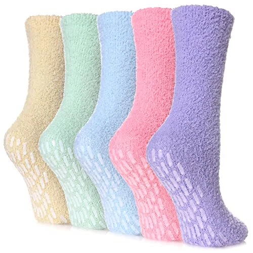 Non Slip Socks for Women Winter Warm Cozy Fuzzy Slipper Socks 5 Pairs Rainbow
