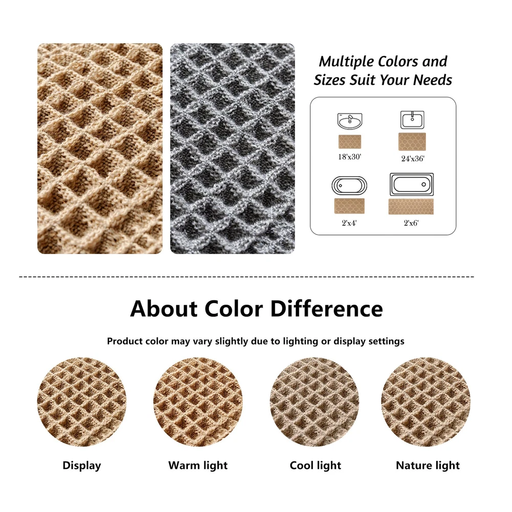 Non Slip Waffle Bath Mat - Super Absorbent Washable Bathroom Rug for Quick Drying and Comfort