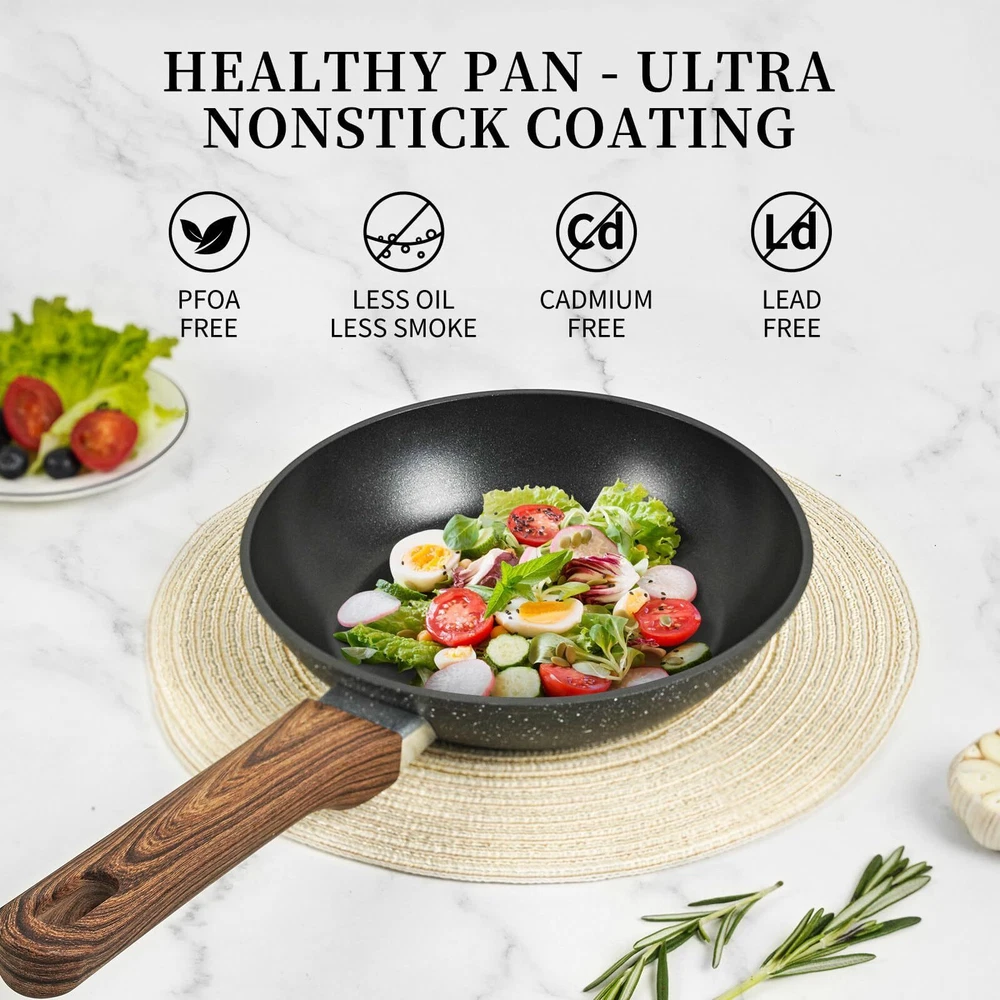 【Super Non Stick Frying Pan】Pans uses excellent non-stick coating technology, has superior abrasion resistance and extreme long-lasting. Nonstick frying pan gives us a healthy pan,less oil,non toxic,PFOA free. 【Suitable For All Stoves】Frying pan is designed to meet the diverse cooking needs of families and various culinary scenarios. Its high magnetic stainless steel base makes it compatible with induction cooktops, gas stoves, electric stoves, glass cooktops, and ceramic cooktops. It ensures rapid and even heating, which is crucial for optimal culinary results. Regardless of the type of stove you have at home, this frying pan is a versatile choice. 【Durable Skillet & Pan】The black pan is crafted with a high-quality granite exterior coating and an superior non-stick smooth interior coating. It is highly durable and perfect for sautéing, frying, boiling, and more. This cooking pan is truly excellent. 【Versatile and Practical Frying Pan】This non-stick pan is perfect for shallow frying, stir-frying, pan-frying, or searing. Whether you're making breakfast bacon/pancakes/crepes or dinner steak/potatoes/fish, it is the perfect choice for sautéing, frying, and deep-frying. 【Gift Frying Pan】The exceptional non-stick pan, frying pan, skillet, egg pan, and omelette pan make for the perfect gift to give to your loved ones on occasions such as Mother's Day, Father's Day, birthdays, holidays, Thanksgiving, Christmas, and more.