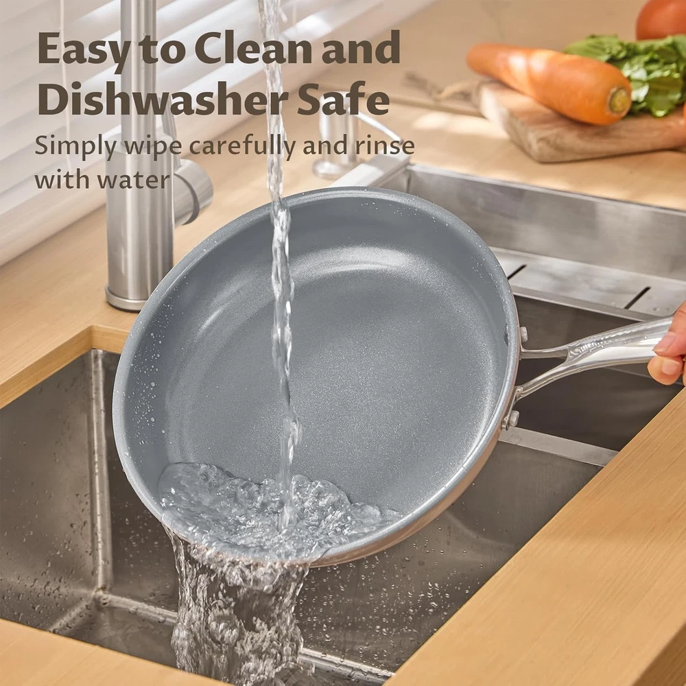 $ 6.6Non Stick Frying Pans Hybrid Ceramic With Lid, 12 Inch TriPly Stainless Steel...