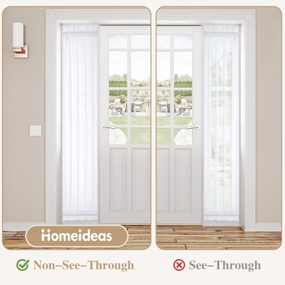 ' s curtains are the perfect combination of traditional craftsmanship and the latest modern technology. Committed to designing and manufacturing to improve the sleeping environment and quality for people. With the idea of providing a better shading effect and cost-effective product for our customers, our ready-made curtains are offered in an array of standard sizes sure to accompany the window and setting for any setting. Regardless of your application, you are sure to find ready-to-hang curtains for your home from us! We have cooperated with over 10 factories to manufacture environment-friendly home products, also we improved our craft by using the new stitching sewing, and coloring craft program in production to ensure that every purchase will receive a professionally constructed curtain set that is sure to hang. 🌺Package Included: 1 Panel of Non-See-Through privacy sidelight door curtain with a bonus adjustable velcro tie-back. You can adjust the length of the tie-back. 🌺Privacy Protection: It is more private than ordinary sheer french door curtains, the fabric is thick, and protects privacy very well so that people outside the door cannot see the indoor environment clearly.Can also be used in kitchens, closets, etc.Can also be used in kitchens, closets, etc. 🌺Quality Fabric: It is more textured than ordinary sheer curtains, silky smooth to the touch, anti-wrinkle, and good workmanship. 🌺Easy to Install: The 2 Rod Pockets design (2-inch diameter for each pocket) can be easy to install and adjust. it can be adjusted according to your different door frame heights, it can also be used as lace decoration. 🌺EASY CARE: The soft door curtains can be machine washable with cold water, gentle cycle, and tumble dry with low heat. Do not bleach.