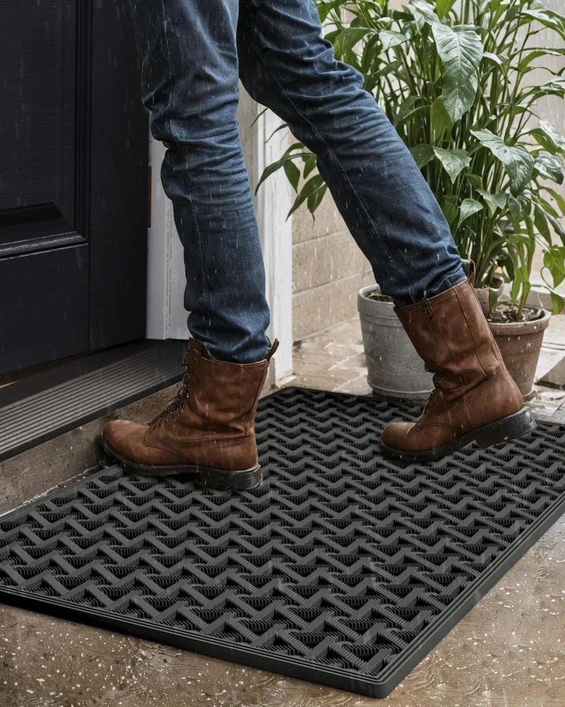 Store New Arrivals Add to Favorite View Feedback Contact Fast deliveries to the customer's home Quality customer service John Make the customers happy! Front Door Mat outside Entrance, 19X29 Rubber Doormat, Stain Resistant, Low Profile, All-Season Weather Dirt Trapping, Waterproof Easy Clean Mats, Black Description Outdoor Door Mat: The DEXI door mat created with new technology, long-lasting and renewable TPE, provides comfortable feeling underfoot. Designed to be tough and sturdy with triangular patterns and hexagon drainage holes for trapping dirt, moisture and slush from outsides entrance, this well-built outdoor mat can be used as a front door mat for entryway, keeps your indoor floors clean and dry. Trap Dirt & Moisture: The outdoor welcome mat is designed with drainage holes throughout the entrance mat that aim in dissipating moisture and allowing water to drain, designed with hollow triangular patterns for helping remove dirt and snow from your shoes. The doormat for outdoor entrance is built to withstand all weather which including rainy or snowing, ideal for wet weather climates. Non Slip & Low Profile: This all-weather doormat can avoid sliding, well-made TPE construction ensures front door mat stays in place when wiping shoes and provides stability. The rugs for entryway feature low profile design so that the majority of doors will easily clear its height. Easy to Clean: The outdoor door mat is easy to maintain, simply give it a quick shake out. If it still needs deeper clean, hose it down with water and hang it to dry. Instead of water collecting in a single location, our door mats outside entrance are able to be drained and dispersed through the drainage holes so that it dries faster. Versatile Use: Our waterproof indoor outdoor rug is ideal for house garden, or any other moisture and high traffic area, keep one at each entryway, front door, porch, patio, garage to keep dirt and debris outside while adding an elegant touch to your decor. Product Description Style Modern Material TPE Weave Type Machine Made Pattern Triangle Country of Origin China Is Stain Resistant Yes Theme Welcome Number of Pieces 1 Is Autographed No Min Required Door Width 19.5 Inches Age Range (Description) Adult Seasons Winter, Summer, Fall, Spring Rug Form Type Doormat Item Thickness 0.35 Inches Indoor/Outdoor Usage Outdoor Animal theme Dog Water Resistance Level Waterproof Room Type Entryway, Bathroom, Kitchen, Patio, Hallway Item Weight 3.3 Pounds Pile Height Low Pile Construction Type Machine Made Occasion Outdoor Patio Special Feature Waterproof, Fade Resistant, Stain Resistant, Non Slip, Dirt Trapper Color Black Shape Rectangular Back Material Type Thermoplastic Elastomer Product Dimensions 29.5"L x 19"W Product Care Instructions Hand Wash Only Size 19"x29" ABOUT US We offer the best prices around on high quality products. Our E-store includes media such as books, movies, music and games while offering electronics, toys, sporting apparel, clothing, tools, general home, garden items and more. SHIPPING We are always working hard to ensure your package arrives as soon as possible. Please understand that some factors like weather, high postal traffic, and the performance of shipping companies are outside of our control. We offer free shipping to the lower 48 states and ship within 2 business days of payment, usually sooner. We do not accept P.O. Boxes. Please provide a physical address. For shipping outside of the continental USA, we only use eBay's Global Shipping Program. The item is shipped to KY and then sent to the rest of the world. International customers are responsible for all duties and taxes. Continue to 'check out' to calculate costs for shipping the item to your country. Messages regarding eBay's Global Shipping Program MUST be directed at eBay EXCLUSIVELY. RETURNS We offer a 30-Day Return Policy on items in which you are not completely satisfied with. You have the option of a full-refund or an exchange of the item. No returns are available on items shipped outside of the USA PAYMENT We accept PayPal. CONTACT US This page content is yet to come Please ad us to your favorite seller and visit again later Thank You CUSTOMER SATISFACTION We try our very best to make sure every customer is completely satisfied. If there's a problem, message us! We're happy to help. WE ACCEPT