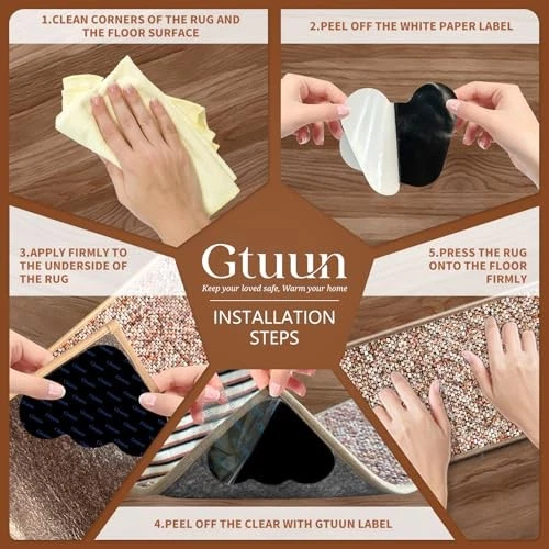 Menu 1. We require immediate payment. 2. We currently accept payment via eBay managed payments only. 3. Once payment is cleared, we will dispatch your shipment within 1-3 business days. Please refer to the "Shipping" tab for more information regarding shipping speed to your destination. Rug Carpet Non Slip Grippers, Dual Sided Adhesive Rug Pad Gripper Keep Corners Flat, Reusable and Washable Carpet Tape Pads, Rug Tape for Hardwood Floors and Tiles,24 PCS Product description 1.【Hidden & Prevent Curling and Sliding】:The thickness of the carpet tape is only 0.04 inches, which stays out of sight for a seamless look.Designed with advanced non-slip and prevent curling technology keep the rugs in place,voiding slipping accidents and properly solve annoying carpet problems like curling, sliding, folding and pet commoving. 2.【Just Right Adhesion & No damage No Residue】: The rug tape adhesives for rug surfaces and floor surfaces are specially formulated separately. The adhesion of the adhesive for rug surface is greatly enhanced, so that the rug stickers will stay long enough on the area rugs without coming off. While, the adhesive for the floor surface has just the right amount of adhesion and does not damage the floor. It is cold and heat resistant, leaves no residue when removed. 3.【Cutable & Widely Applicable】: GTUUN flexible carpet stickers can be easily cut into any shape for carpets of all shapes and sizes. Perfect for both indoor and outdoor settings, it is suitable for bedrooms, living rooms, hallways, kitchens, bathrooms, patios, garages, and more. 4.【Easy to Install】: Install it in one minute , it fits all corners of all rugs or carpets. The White side is used for Carpet, and the transparent side with Gtuun is for floor. Effortlessly usable on hardwood, laminate, tile, vinyl, marble, concrete, and all other smooth hard floors 5.【Washable and Reusable】: The grippers for rugs are easily removed and no residues will be left. You can wipe the grippers with clean water or soapy water if needed. Well, cleaning with rubbing alcohol could help achieve better effectiveness to resume the adhesion. Note: If the backing of your rugs has fluff or fiber, it is not suggested to remove the grippers from your area rugs to wash. Just clean or wash the grippers on the rug PLEASE MESSAGE US IF YOU HAVE ANY OTHER QUESTIONS, AND MANY THANKS FOR READING ALL OF THIS. Copyright ©#. All Rights Reserved.