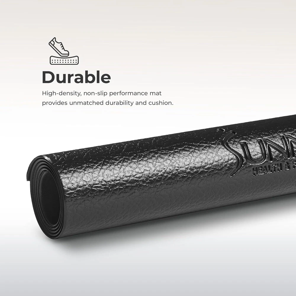 S - 51L x 23.5W x 0.16H in Non-Slip Home Gym Mat – Workout Floor Protection Foam Pad for Treadmill, Bike, Elliptical, Yoga and Exercise Equipment 【HEAVY DUTY PROTECTION】Safeguard your equipment and floor with our heavy-duty, high-density EVA foam mat. Maintain optimal equipment condition and absorb vibrations to prevent scratches on fitness equipment and floor surfaces. 【VERSATILE USAGE】 Crafted with high-density EVA foam material, our stationary equipment mat offers exceptional comfort and durability. Ideal for yoga, Pilates, aerobics, and stretching. 【WATERPROOF & HYGIENIC】 Sweat without worries on this easy-to-clean and waterproof surface. Simply wipe it down after each use for hassle-free maintenance. 【UNIVERSAL FLOOR PROTECTION】 Designed for use on various hard surfaces, including wood, stone, tile, and concrete, our 4.2 mm thick foam mat acts as a reliable barrier 【NON-SLIP SURFACE】 Enjoy enhanced stability during workouts with the slip-resistant textured rubber surface, keeping your stationaries securely in place. 【COMFORT CUSHIONING】 The high-density EVA foam delivers unmatched cushioning and stability, allowing you to perform various exercises with confidence and comfort. 【LOW MAINTENANCE】 Our mat is water-resistant and sweat-resistant, making it effortless to keep clean. Simply wipe it down with a damp cloth after each use, ensuring a fresh and hygienic surface for your next workout. Material Polyvinyl Chloride Foam,Ethylene Vinyl Acetate,Rubber Product Care Instructions Hand Wash Only Product Dimensions 51"L x 23.5"W x 0.16"Th Item Weight 1.7 Pounds