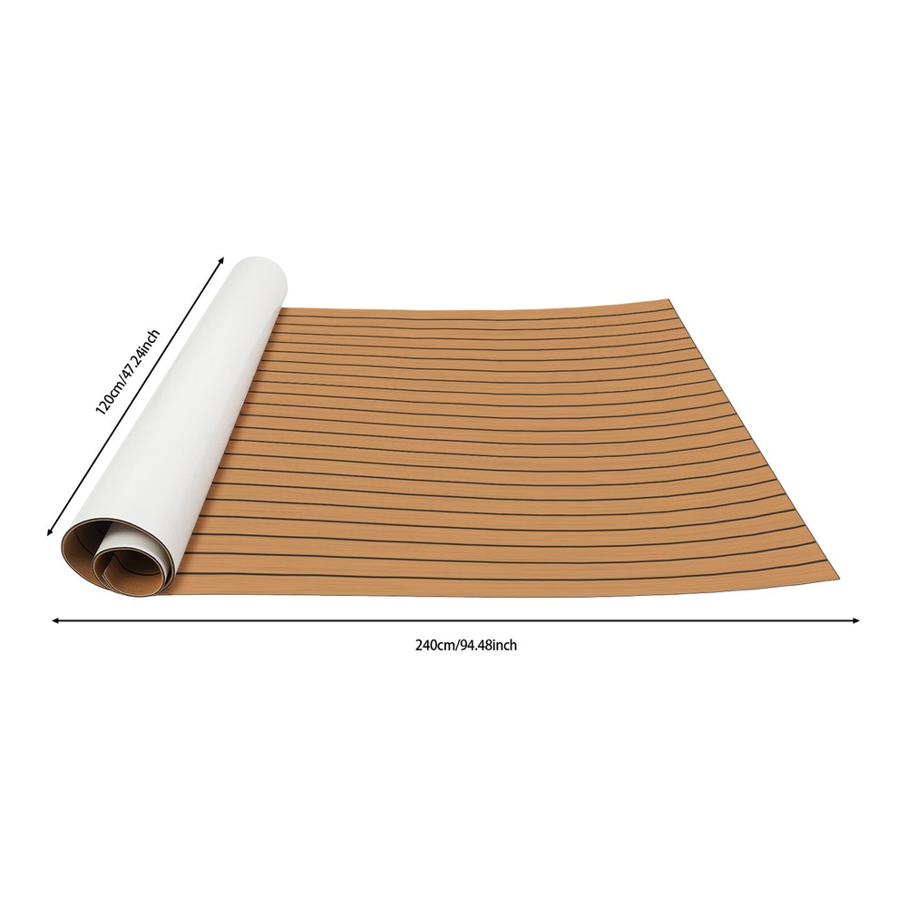 Specifications Material: EVA Process: Wire Drawing, Grooving Color: Brown+Black Back Adhesive: White Glue Shape: Rectangle Pattern: Stripe Hardness: 50-65HS Density: 160-180kg/m³(9.98-11.23lb/ft³) Package Size: 121*15*15cm/47.63*5.9*5.9in Product Size: 240*120cm/94.48*47.24in Gross Weight: 2.5kg/5.51lbs Net Weight: 2.38kg/5.24lbs Package Included 1* Non-Slip Mat Non-Slip Mat for Boat and Yacht, Non-Slip Mat EVA Boat Flooring Mat for Yachts Description The damp ship deck requires a great pad to enhance your sense of security. Look at our non-slip mat. It is the solution you've been seeking! Its durability, practicality, and beautiful appearance make it an ideal choice for various boat decks . It will not only be a visual enjoyment to your eyes but can also bring you to a world of secure and enjoyable experiences. Don't wait, choose it and elevate your adventures! Key Features Build to Last: The product is made of premium EVA with wire drawing and grooving processes , which is wear-resistant , UV-resistant, high-temperature-resistant, odor-free, and waterproof , ensuring its long-term service life. High Safety: The non-slip textured surface not only gives the product a more unique and beautiful appearance but also further strengthens the anti-slip properties and improves your safety when walking on the deck. Lightweight and Portable: With a light weight of 5.24 lbs , it is convenient to carry and transport. You can easily move it to use it at different places to satisfy your various needs. Comfortable Experience: The thickened EVA is well cushioned to reduce pressure on the feet and back, providing a more comfortable experience for long days on the water. Flexible Use: It can be easily cut into different sizes and shapes, allowing you to customize it to fit the boat's layout and contours, which is practical and convenient, satisfying your various needs at different places. Large Size: The large size of this product ( 94.48*47.24in ) can cover the big surface of the ship to meet your needs. Labor-saving Cleaning : The product is washable and waterproof , allowing for easy cleaning of stains and dirt from daily use or sea spray, and it can be cleaned with broom, vacuum cleaner (not included) or be pressure washed. Ideal Gift: The beautiful appearance, simple installation, and practical function make it an ideal gift for your friends, families, and colleagues. Buy with Confidence: We stand behind all our guests and look forward to assisting you with your purchase. It is our pleasure to answer your confusion and questions. The end of the story between us is not "we sell and you buy". Details Back Adhesive : It allows for quick and hassle-free use without the need for additional tools, and its strong stickiness ensures the mat stays firmly in place, providing long-lasting slip resistance . Stripe Patterns : They increase friction to effectively prevent slipping , and they adds a unique aesthetic appeal to the surrounding environment. The grooves are beneficial for drainage, reducing water accumulation. Application It is suitable for yachts, golf carts, surfboards, outdoor vehicles, speedboats, ATVs, kayaks, fishing boa ts, motorboats, diving platforms, swimming pools, balconies, gardens, ramps, and other water sports and recreational vehicles. Specifications Material: EVA Process: Wire Drawing, Grooving Color: Brown+Black Back Adhesive: W hite Glue Shape: Rectangle Pattern: Stripe Hardness: 50-65HS Density: 160-180kg/m³(9.98-11.23lb/ft³) Package Size: 121*15*15cm/ 47.63*5.9*5.9 in Product Size: 240*120cm/ 94.48*47.24in Gross Weight: 2.5kg/ 5.51 lbs Net Weight: 2.38kg/ 5.24 lbs Package Included 1* Non-Slip Mat Notes Please check the product size carefully before purchasing. In some cases, a small amount of adhesive may be left on the surface of the deck after ripping off the product. Before installing the mat, please ensure that the floor surface is clean, not dirty, and free from oil, wax, or damp conditions. Please install this product on a hard, clean, and flat floor. Please note that the mat can be flattened with heavy objects to remove the curling to make the installation easier. Please allow the slight color difference caused by the shooting light and the 1-3 cm error due to manual measurement, and make sure you do not mind before ordering. Payment Delivery details Terms of sales About us Contact us Payment We accept ebay payment 。 Fees such as import duties, taxes are not included in the item price or shipping costs. These charges are the buyer's responsibility. Delivery details Shipping: 2-9 working days to: USA Terms of sales We maintain high standards of excellence and strive for hundred percent customer satisfaction. Feedback is very important to us. We hope that you contact us immediately before you give neutral or negative feedback, so that we can address your concerns. It is impossible to address issues if we do not know about them! About us Your satis faction is our ultimate goal. We work hard to earn your trust and future business. Our certified technicians have tested each item before shipping. The unit comes with 1 year limited warranty on all manufacturing defects. a) If you receive a defective item, you may return it or ask for a discount. Please contact us within 14 days after you receive the package. b) What you returned must be intact and in its original packaging as re? u. Customer is responsible for shipping costs of the returned item. c) We will cover the cost of shipping back t with the shipping rate indicated in the registration page. We will send you a new unit or refund the full payment you paid. Thank you. Contact us Business Hour Business Hour: Monday To Friday: 8:30 AM to 5:00 PM (Beijing China time) Due to time zones, our reply to your questions may not be immediately. But within above working time, we will reply your email within 24 hours. If it's non-workdays, please kindly be patient and wait till Monday. Please contact us with ebay message. Please feel