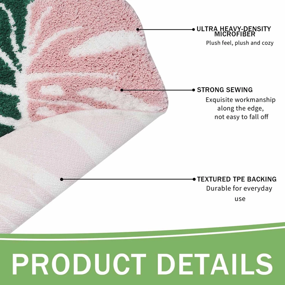 PAMPER YOUR FEET: Sink into the dreamy softness enveloping your feet after your bath. This soft green bath mat is made out of microfiber shag for the plushest sensation that will make you feel luxuriously pampered. Soft pile that soothes tired feet and shields toes from the cold floor. ULTRA ABSORBENT: Instantly dry your feet as you step out of the shower just by standing on this magically absorbent shaggy leaf bath rug. Cute bathroom mats also soak up excess water or splashes, keeping floors clean, dry. Don’t let water pool on the floor. NON SKID TPE BACKING: The monstera leaf bath mats for bathroom have a nonslip rubber backing and are to provide an anti-slip surface to step on after you’ve taken a bath or shower, cradles and protects you from falls. TPE Rubber mats can be washed and dried over and over again for long-lasting use. Note: Please make sure it is on a clean and dry floor or it may pose a hazard. EASY CARE: The green leaf bathroom mat is easy to clean. Machine wash separately with cold water and mild detergent (no chlorine or bleach) tumble dry at low speed, tumble dry low or hang dry. Without losing its soft feel or sharp color, no matter how many times you wash and dry it. SPECIAL DESIGN: A cute bath mat that will surprise you! This leaf rug fully recreates monstera leaves, with vivid greens and great detailing that will brighten up your bathroom. it is a brand new bold design to liven up your bathroom.