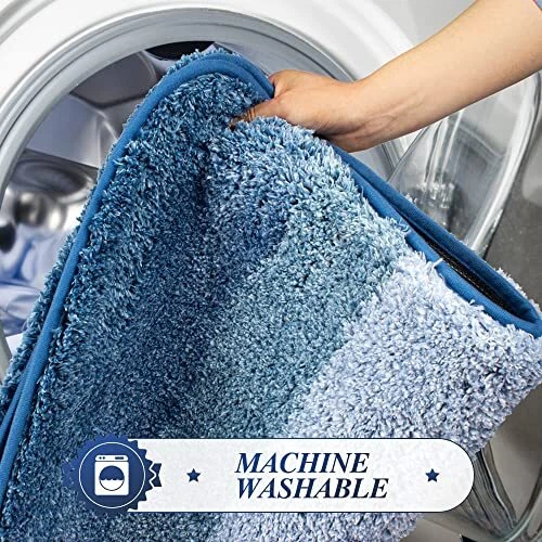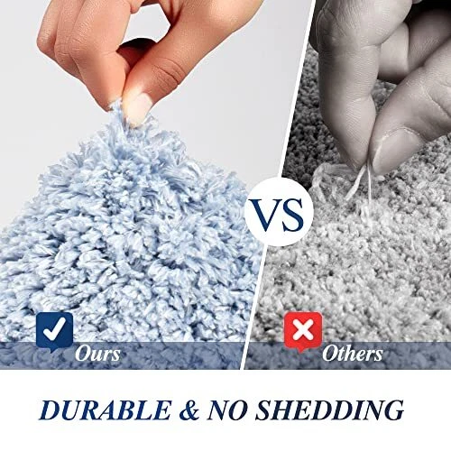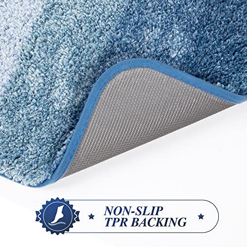 1. This bath mat is super soft and plush—perfect for stepping out of the shower! The ombre blue color looks elegant, and it absorbs water quickly. Love that it’s machine washable and stays non-slip even when wet. Great quality for the price!