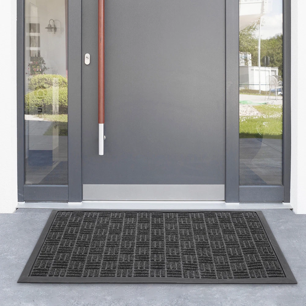 Welcome Mats Front Door Mat for outside Entry Rugs Entryway Outdoor 90*60cm Description The warmth of home, from the first step into the door to start ——for you to recommend our entry floor mats, a set of beauty, practicality, and quality in one of the good home products. It is made of high-quality materials, after exquisite craftsmanship, easy to adapt to a variety of home styles, and instantly enhances the overall home style, highlighting the unique taste. It has a unique non-slip design, for your safe plus an invisible line of protection, so that you and your family are in and out more at ease. Shop now and make every step home full of warmth and happiness! Key Features Sturdy and Durable: The product is made of high-quality polyester and synthetic rubber , using a hot melt implantable process to firmly bond the top layer (polyester surface) to the base layer ( synthetic rubber bottom), with high strength, f ade-resistant, eco-friendly, and non-toxic. Keep Indoor Clean: The product's surface features a grooved design that creates a retention dam to help catch dirt, dust, and other stray debris from getting inside. The high-quality polyester fabric on its surface absorbs moisture. The high edges around the doormat can effectively catch excess water, preventing the floor from getting wet on rainy days. Humanized Design: The non-slip rubber bottom gives the product a good grip on the ground, thus you can provide higher safety for your family to use. Also, the three-dimensional textured design increases its surface friction to prevent you from slipping. Ready to Use: This product is molded in one piece, so you can use it as soon as you receive it, eliminating the need for complex installation. Adjustable Size: This product is cuttable and foldable, so you can cut it to any size and shape you need for different-sized entries. Easy to Clean: Its simple construction allows you to easily clean it with water and a dust catcher for your convenience. Convenient Storage: Thanks to its good toughness, it can be rolled up and stored without taking up too much space. Stylish Design: The blue 、Grey color and minimalist design make this product modern and stylish, which blends well with other furniture decorations. Nice Gift: Thanks to its minimalist design and practical function, you can choose this product as a housewarming gift for your friends. Details Soft Edges: It has soft material on all sides for easy curling. Suitable Thickness: The 5mm thickness can prevent water from seeping into the floor and gives the product good shock absorption and tear resistance , making it soft and comfortable to step on. Moreover, It won't hinder the door from opening and closing, ideal for daily use in high-traffic areas. Application This product is suitable for indoor and outdoor use, such as entrance hall, bathroom, toilet, living room, hotel lobby, office, office building, gate, pavement, patio, garage, barn, driveway, and so on. Specifications Material: Polyester, Synthetic Rubber Process: Hot-melt Planting Style: Morden Color: Blue 、Grey Mount Type: Floor Mount Shape: Rectangular Assembly Required: No Thickness: 0.5cm/ 0.2 in Gross Weight:1.7kg/3.75 lbs Net Weight: 1.62kg/3.57 lbs Product Size: 90*60cm/35.43*23.62 in Package Size: 62*11.5*11.5cm/24.41*4.53*4.53 in Package Included 1* Entry Floor Mat Notes Please note that the product is shipped rolled up, but it still lays completely flat immediately when you use it. Please note that mat sizes are approximate as rubber shrinks and expands in conjunction with temperature and time. Please keep it away from fire, flammable materials, hazardous materials, scrapers, and other sharp objects. If any odor is found after receiving the product, please ventilate the product in a cool place for 2-3 days. If you are particularly sensitive to odors, you can extend the ventilation time. Please allow the slight color difference caused by the shooting light and 1-3cm error due to manual measurement, and make sure you do not mind before you order. Payment Delivery details Terms of sales About us Contact us Payment We accept ebay payment 。 Fees such as import duties, taxes are not included in the item price or shipping costs. These charges are the buyer's responsibility. Delivery details Shipping: 2-9 working days to: USA Terms of sales We maintain high standards of excellence and strive for hundred percent customer satisfaction. Feedback is very important to us. We hope that you contact us immediately before you give neutral or negative feedback, so that we can address your concerns. It is impossible to address issues if we do not know about them! About us Your satis faction is our ultimate goal. We work hard to earn your trust and future business. Our certified technicians have tested each item before shipping. The unit comes with 1 year limited warranty on all manufacturing defects. a) If you receive a defective item, you may return it or ask for a discount. Please contact us within 14 days after you receive the package. b) What you returned must be intact and in its original packaging as re? u. Customer is responsible for shipping costs of the returned item. c) We will cover the cost of shipping back t with the shipping rate indicated in the registration page. We will send you a new unit or refund the full payment you paid. Thank you. Contact us Business Hour Business Hour: Monday To Friday: 8:30 AM to 5:00 PM (Beijing China time) Due to time zones, our reply to your questions may not be immediately. But within above working time, we will reply your email within 24 hours. If it's non-workdays, please kindly be patient and wait till Monday. Please contact us with ebay message. Please feel free to contact us if you have any questions. Monday To Friday: 8:30 AM to 5:00 PM (Beijing China time) Due to time zones, our reply to your questions may not be immediately. But within above working time, we will reply your email within 24 hours. If it's non-workdays, please kin