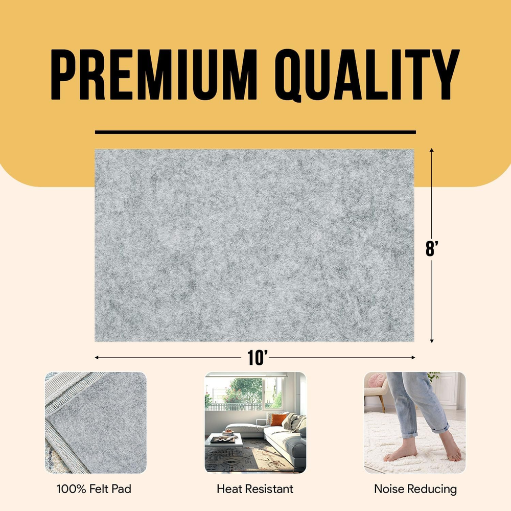 Non-Slip Premium 8x10 Felt Rug Pad for Hardwood & Laminate Floors