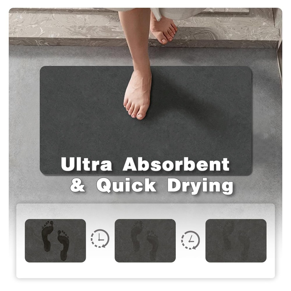 Our bath mat offers the perfect blend of comfort and functionality, making it a must-have for any bathroom. Designed with a sleek, minimalist style, this bath rug is super absorbent, quickly soaking up water the moment you step out of the shower or bathtub. Within minutes, the mat dries, leaving no wet spots or watermarks behind, so you can enjoy a dry, clean bathroom floor every time. The bathroom mat features a high-quality non-slip backing made of natural rubber, ensuring it stays securely in place even on smooth surfaces. This upgraded backing provides enhanced stability, reducing the risk of slipping for both kids and the elderly. Unlike traditional bathroom rugs, this bath mat won’t curl up or slide around, giving you peace of mind. Thanks to its thin design, this bathroom rug fits easily under doors, making it a great choice for smaller spaces. It’s perfect not only for the bathroom but also for use in the laundry room, kitchen, or even as an RV bath mat. Available in multiple sizes and colors, you’ll find the ideal fit for any space, whether you need a small bath mat, a larger rug, or a bathroom runner. Whether you’re looking to enhance your bathroom decor or add a practical touch to any room, this bath mat delivers on both comfort and performance. Indulge in Luxury and Comfort: Our bathroom mat features a sleek, modern design that absorbs water efficiently, even though it's not fluffy. Its thin profile fits under doors easily, making it an ideal choice for small bathrooms with limited space. Step onto our soft, cozy bath mat after your shower and feel the comfort embrace your feet Fast Absorbing & Quick Drying: Our bathroom rug absorbs water instantly as you step out of the shower or bathtub. In just a few minutes, it’s completely dry, with no watermarks left behind. The mat dries quickly, so your floor stays clean and dry Upgraded Non-Slip Backing: Our bath rugs feature a high-quality natural rubber backing, providing perfect anti-slip properties on the floors. They tightly grip smooth surfaces without skidding or curling up, reducing the risk of slipping for kids and the elderly. Say goodbye to traditional slippery TPE/TPR backed bathroom rugs and enjoy enhanced safety and stability Easy to Care: Thanks to the hairless new-tech layer, these bathroom mats are easy to clean. Water evaporates quickly, preventing dirt and hair from attaching to the surface. No need machine wash. After long-term use, simply wipe it with a wet cloth, rinse it with a shower nozzle or use vacuum cleaner. And dry it in open air after washing.To ensure it has a long life time, please do not use of dryer or bleach cleaning Multi-Purpose Use: Available in a variety of colors, these bath rugs complement any décor style. Having lots of sizes to choose from, such as small bath rug, large bath rug,long bath rug and bathroom runner rug, you can easily find one to fit in front of the sinks, showers, or bathtubs. You can also use them in the kitchen, bedroom, laundry room, RV, hallway, entryway, stairs, and more