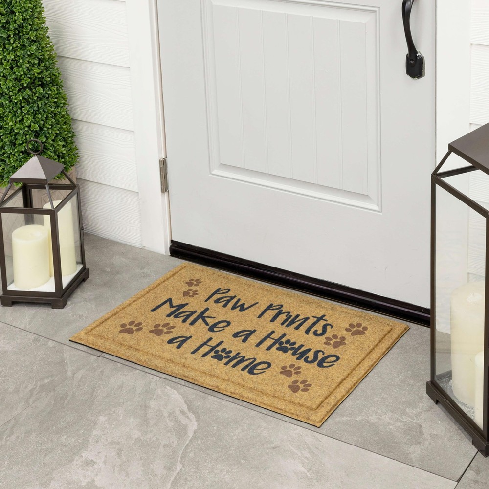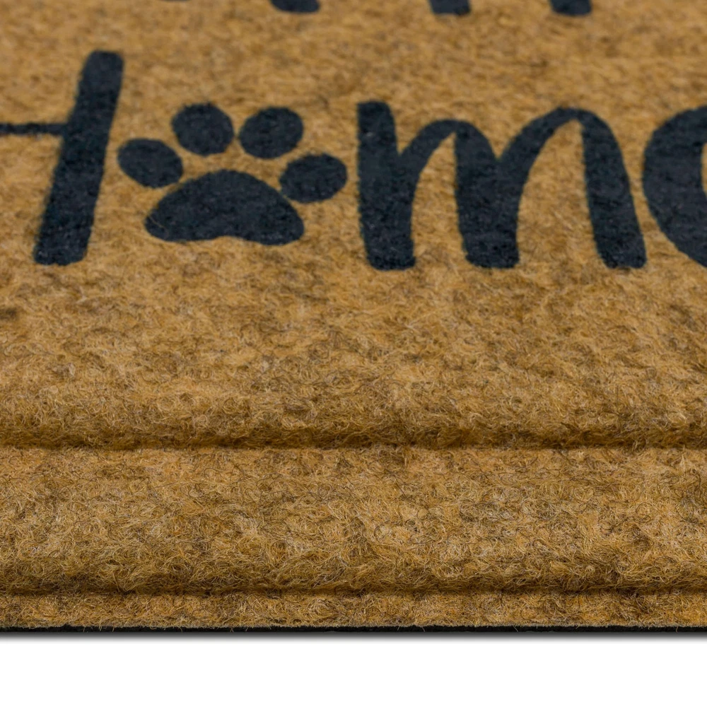 Enhance any doorway with the inviting charm of this doormat, showcasing a delightfully welcoming design that is sure to make a statement! Crafted with a robust faux coir polyester surface and backed with 100% recycled rubber, this doormat offers an eco-friendly decor option that combines style, substance, and sustainability like never before. The coarse faux coir surface boasts exceptional scraping and wiping properties, efficiently tackling dirt and debris while absorbing water from shoes before it finds its way indoors. Unlike traditional coir, this faux coir variant is shed-free, delivering long-lasting functionality that remains intact year after year. An excellent choice to bring functional flair to any entryway in your home. DYNAMIC DESIGN: Designed to withstand everyday wear, the ultra-durable faux coir surface provides safe traction underfoot along with outstanding all weather resistance, making it perfect for busy outdoor spaces. LOW PROFILE: Low-profile height ensures optimal functionality for any doorway, reducing tripping hazards and entryway obstructions, while allowing doors to open and close freely. EXTRA GRIP: Robust rubber backing delivers extra grip to help minimize doormat slipping and sliding on hard surface flooring in high traffic entryways. EASY CARE & CLEAN: Keep your doormat looking fresh with ease: simply vacuum, sweep, shake out, or rinse off debris with a garden hose, and spot clean when needed; air dry flat. MADE IN THE USA: Proudly made in the USA of US and imported materials, assuring top-tier quality for every setting.
