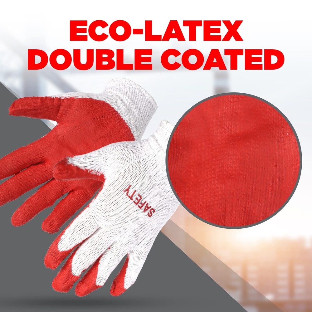 Have you been searching for versatile work gloves that will keep your hands protected and provide the comfort you deserve? safety gloves is what you have been looking for. Don’t DelayOrder Today! These working gloves are a popular choice for general construction, , industrial work, agriculture, gardening, landscaping, material handling, maintenance, masonry, plumbing, warehouse, shipping/handling and more. And for good reason. Their quality is second to none and the medium weight offers great hand protection. In addition, the non-slip latex palm coating provides enhanced grip and abrasive resistance. These top quality gloves stretch to fit a wide variety of hand sizes, small and large! Here are a few more reasons why you’ll love these heavy-duty durable gloves: Cotton breathable knit ensures a comfortable fit Rubber wrists are designed to keep out dirt, dust & debris Comes in value packs that will save you time & money! Target gender unisex DURABLE DESIGN WITH QUALITY IN MIND: Designed to Last, multi-purpose work gloves are ideal for heavy duty use PERFECT BALANCE BETWEEN PROTECTION & COMFORT: These one-size-fits-most working gloves for men and women are made out of a premium, breathable cotton blend; They'll protect your hard-working hands while keeping you comfy all day ENHANCED PALMS ALLOW YOU TO GET A STRONG GRIP: Items won't be sliding out of your hands when wearing safety gloves; These construction gloves are designed with comfort & protection in mind; The non-slip red latex nitrile rubber coating provides Abrasion resistance for a strong & firm grip