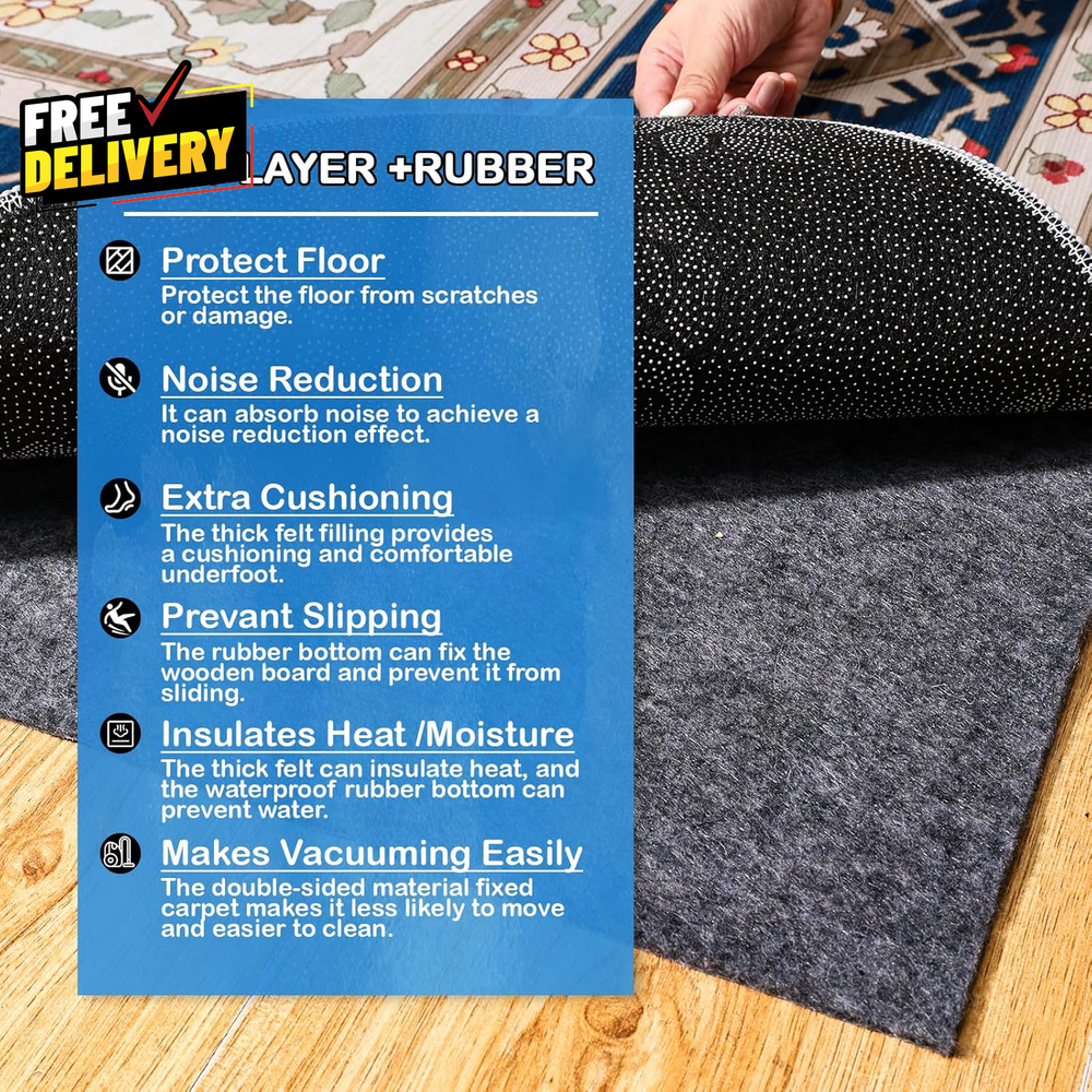 Store New Arrivals Add to Favorite View Feedback Contact Non-Slip Rug Pads 8 X 10 Ft 100% Waterproof Extra Large Area Rugs Non Skid Rug.. Description 【 Waterproof Rug Pad】--Felt + Waterproof TPR carpet pad for all types of carpeting. The rough fabric of the felt top layer grips the carpet tightly to prevent it from curling and crawling, while the non-slip backing prevents the carpet from slipping in any direction. 【Extra Larger Rug Pad】-- Only rug pad, Not included area rug . Extra larger size, perfect for living room and bedside rug. This made of felt and Waterproof TPR, won't stain, damage or leave marks on your floor, durable and sturdy, Bringing comfort and convenience to your life. 【Protect Your Rugs】-- This rug pad is made of high quality materials with a waterproof TPR backing that is safe to use on hard surface floors such as hardwood floors and tile. Prolonged friction can damage the carpet backing and cause the pile to loosen. Acting as an extended cushion between the carpet and the floor, tightening the carpet fibers and preventing them from being crushed, while helping to ensure that the carpet stays clean, extending the life of the rugs. 【Non Skid】-- Put the felt pad under the carpet and you'll feel something completely different! This rug pad prevents carpet from shifting, knotting and wrinkling on hard floors. Perfect for high traffic areas and families with children and pets. 【Free Cut】 The carpet padding can be easily trimmed, Just 2 inches smaller than the carpet size to fit the size of the rug carpet. Edges will remain firm and smooth. Item model number 2 Unit Count 80.0 Square Feet Style 1/8" Thick Number of Items 1 Color Blue Product Dimensions 120"L x 96"W Country of Origin China Item Weight 6.24 Kilograms Shape Rectangular Surface Recommendation Tile Size 8' x 10' (Rectangular) Fabric Type Polyester Product Care Instructions Hand Wash Only ABOUT US Prior to making any purchase from our store, we’d like to introduce ourselves. My name is Shahzad Yaqub , and I am the proud owner of Epic Emporium Deals , located in the great state of Illinois, USA. I have been an active and trusted eBay seller since Jan 14, 2025 . At Epic Emporium Deals , we are committed to offering competitive prices and top-quality products . Our extensive collection features a wide variety of items, including media such as books, movies, music, and games , as well as electronics, toys, sporting apparel, clothing, tools , and general home and garden essentials —and much more! If you have any questions or require assistance, please don’t hesitate to reach out. Your satisfaction is our priority, and we look forward to providing you with an exceptional shopping experience. SHIPPING We are always working hard to ensure your package arrives as soon as possible. Please understand that some factors like weather, high postal traffic, and the performance of shipping companies are outside of our control. We offer free shipping to the lower 48 states and ship within 2 business days of payment, usually sooner. We do not accept P.O. Boxes. Please provide a physical address. For shipping outside of the continental USA, we only use eBay's Global Shipping Program. The item is shipped to IL and then sent to the rest of the world. International customers are responsible for all duties and taxes. Continue to 'check out' to calculate costs for shipping the item to your country. Messages regarding eBay's Global Shipping Program MUST be directed at eBay EXCLUSIVELY. RETURNS We do not accept returns under normal circumstances. However, we will gladly consider a return if the item is received broken or if the wrong size is sent to you. In all other cases, returns will not be accepted. CUSTOMER SATISFACTION We try our very best to make sure every customer is completely satisfied. If there's a problem, message us! We're happy to help.