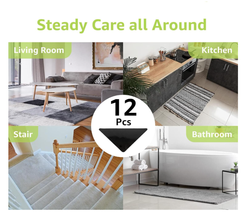 Rug Tape, Non Slip Rug Pads Grippers for Hardwood Floors and Tiles ABOUT THIS ITEM: Advantaged Triangle Design: The Triangle Design grippers for area rugs and hardwood floors will maximum increase the contact surface. The strong adhesion will help stick firmly and keep your area rugs in place. Moreover, the rug stickers for wood floors will prevent the rug corners and edges curling and always keep your rugs steady and safe Thin and Hidden : The rug tape for area rugs on hardwood floor is very thin. They are easily hidden and will not affect the flat appearance of your area rugs Reusable : The grippers for rugs are easily removed and no residues will be left. You can wipe the grippers with clean water or soapy water if needed. Well, cleaning with rubbing alcohol could help achieve better effectiveness to resume the adhesion. Note: If the backing of your rugs has fluff or fiber, it is not suggested to remove the grippers from your area rugs to wash. Just clean or wash the grippers on the rug Easy Installation : The non slip adhesive rug pads are with dual-side stickers, separately in white and clear color. First, peel off the white sticker and stick the rug pads on the bottom of your area rug. Second, peel off the clear film and stick the rug pads on the floor. Third, press hard to make sure they paste firmly. Note: Must Clean the contact surfaces of the rugs and floors before sticking Wide Application : The grippers for rugs works well on hardwood floors, tiles floors, concrete floors as well as marble floors. NOTE: 1. It is not recommended to use on the area rug with FLUFF backing, as the grippers are very sticky and may remove the fluff. 2. It is not recommended to use on the area rug with JUTE or RUBBER backing, as the grippers may not stick to these materials. 3. It is not recommended to use on AREA RUG over CARPET SHIPPING: We offer FREE shipping on all orders! We ship within Three business days of payment, usually sooner. We use a selection of shipping services such as UPS, FedEx, USPS etc. We only ship to the lower 48 states, no APO/FPO addresses or PO Boxes allowed. Local pickups and combined shipping options are not provided at this time. PAYMENT: We accept payment by any of the following methods: PayPal Please pay as soon as possible after winning an auction, as that will allow us to post your item to you sooner! FEEDBACK: Customer satisfaction is very important to us. If you have any problem with your order, please contact us and we will do our best to make you satisfied. Thank you for shopping with us!