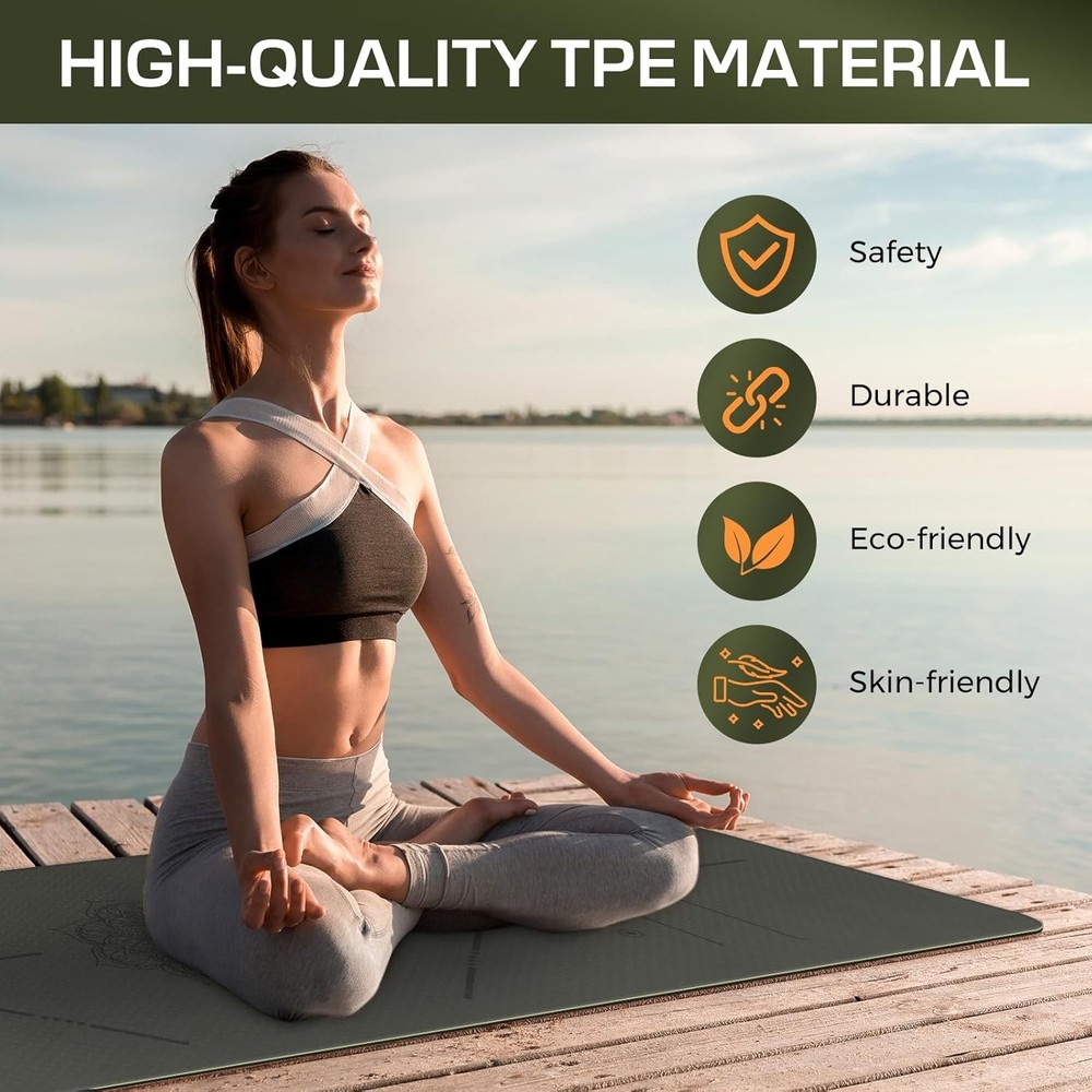 This yoga mat is a game-changer! The thick, non-slip TPE material provides amazing grip and cushioning, keeping me stable during intense workouts. The alignment marks are super helpful for beginners, and it’s easy to clean after sweaty sessions. Perfect for yoga, Pilates, or gym workouts—super durable and comfortable! Highly recommend!