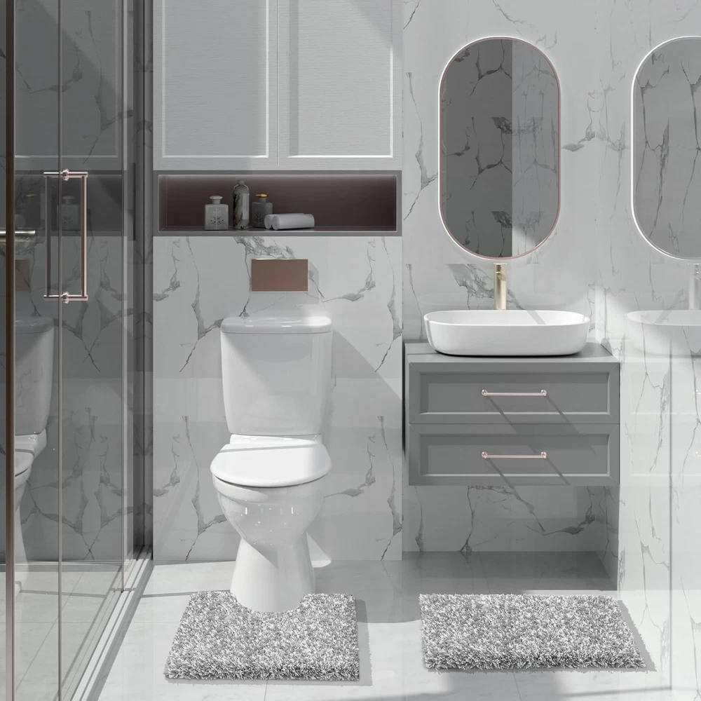 Yimobra Bathroom Rugs Non Slip Washable 17" x 24", Light Gray and White Product Details Brand: Yimobra Size: 17" x 24" Material: Rubber Weave Type: Machine Made Item Weight: 16 ounces Pile Height: High Pile Construction Type: Machine Made Back Material Type: Thermoplastic Rubber (TPR) Color: Light Gray and White Indoor/Outdoor Usage: Indoor Theme: Clouds Is Stain Resistant: Yes Product Care Instructions: Machine Wash Pattern: Solid Special Feature: Fluffy, Dry Quick, Non Slip, Washable Room Type: Laundry Room, Bathroom, Bedroom, Living Room Product Dimensions: 17"L x 24"W Rug Form Type: Bath Mat Style: Shaggy Occasion: Housewarming Number of Pieces: 1 Item Thickness: 2 Centimeters Water Resistance Level: Not Water Resistant Is Autographed: No Age Range (Description): Adult Item Weight: 1 pounds Manufacturer: Yimobra Fabric Type: Microfiber Assembly required: No Batteries required: No Microfiber [ MULTIPLE MACHINE WASHES WITHOUT CLUMPING OR TANGLING ] Our fluffy bathroom rug can maintains its pristine shape and texture even after numerous machine washes. Unlike other bath mats on the market prone to clumping and tangling, our plush bath rug is crafted from sturdy, reliable materials that ensure long-lasting use. Cleaning is a breeze—whether hand-washing or using a machine, this bath mat emerges looking brand new, maintaining its quality through time [ FLUFFY SOFTNESS and RESILIENT AGAINST FOOT TRAFFIC] Yimobra's luxurious bathroom rugs have been elevated with new elastic microfiber, ensuring the preservation of their fresh appearance and plush feel even after repeated use. With an ability to resist sinking or flattening, our rug offers an unparalleled walking experience, akin to strolling on clouds. The rug's thickness and softness are especially convenient for tasks like bathing kids, providing a comfortable surface to kneel on [ ULTRA-ABSORBENT and QUICK-DRYING ] Our plush bath rugs for the bathroom showcase a dense pile of absorbent fibers that effortlessly soak up water. Step onto the mat with confidence right after your shower, preventing any water from being tracked onto your bathroom floor. The high-density material excels not only in moisture absorption but also in providing a cushioned haven for your feet, ensuring warmth and coziness even on the coldest tiles [ PATENTED NON-SLIP TPR BOTTOM FOR ENHANCED SAFETY ] Our bath rug featuring a patented hexagon suction cup-inspired bottom design that firmly anchors the mat in place. This ingenious structure effectively prevents water from seeping through, adding an extra layer of security for both you and your loved ones. Engage in your bathroom activities with peace of mind, knowing you are safeguarded against slips and falls [ VERSATILE USAGE SCENARIOS ] Our luxury shaggy microfiber bathroom rugs effortlessly harmonize with various bathroom settings. With an array of colors and sizes to choose from, you can find the perfect fit for your decor. Enhance your shower, bathtub, master bathroom, kids' bathroom, or vanity area with these rugs. Their warm and cozy surface invites relaxation, transforming your bathroom into an oasis of comfort and style
