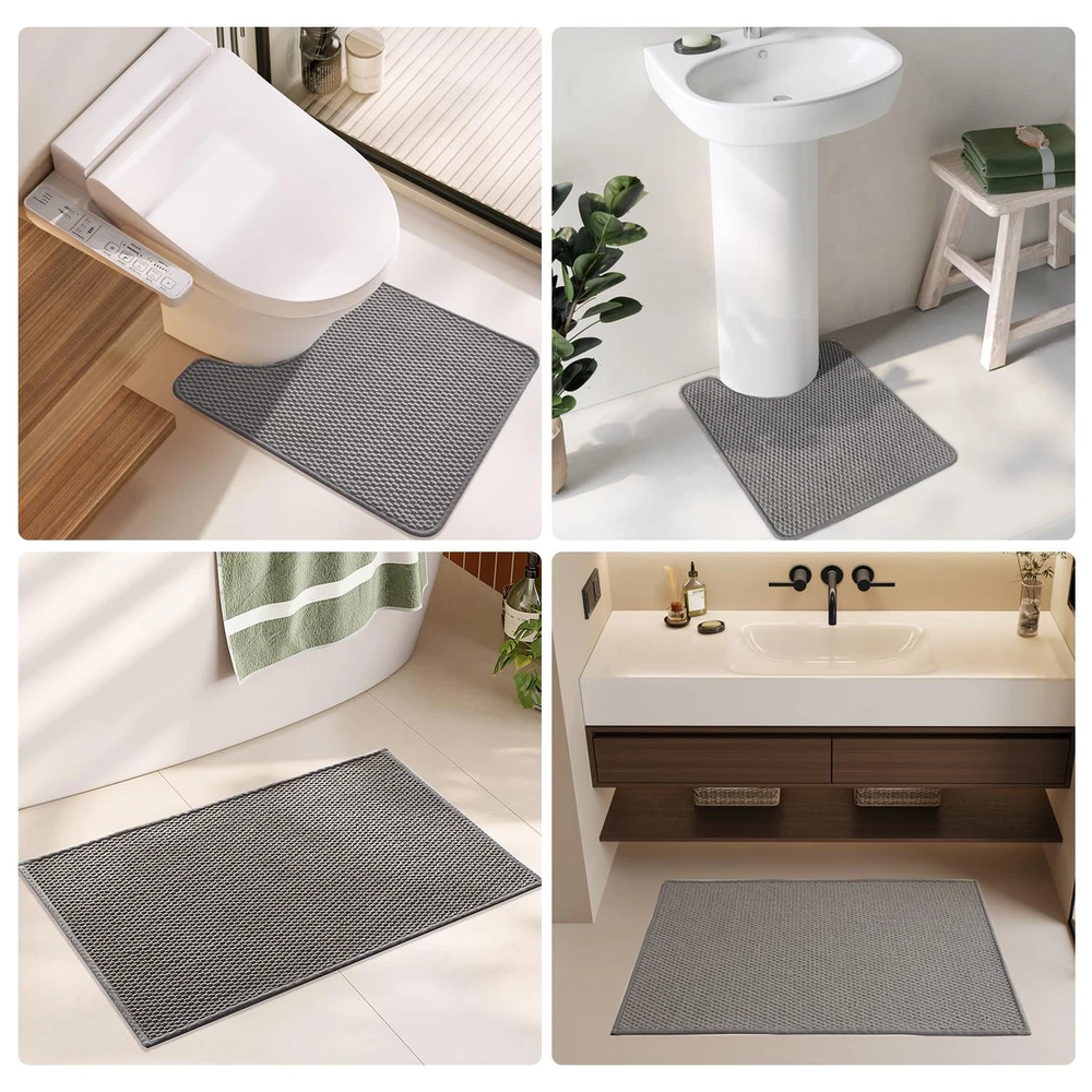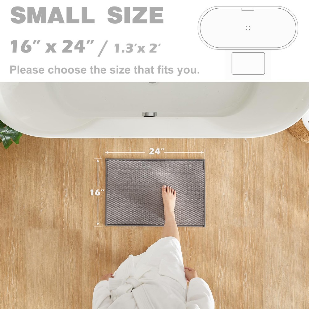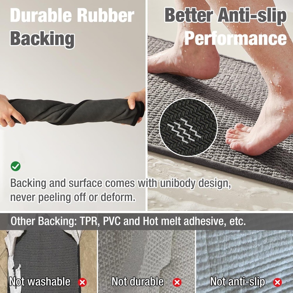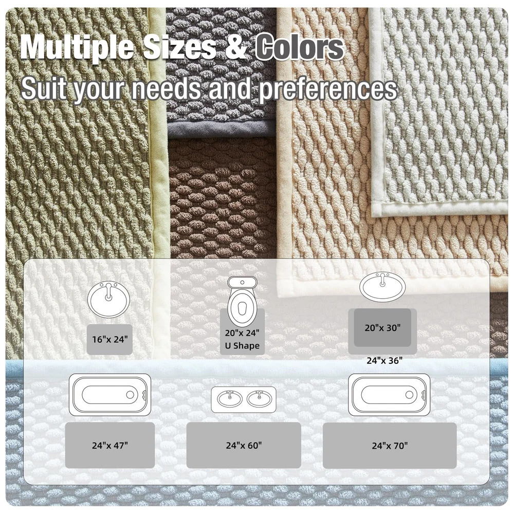 Indulge Yourself in Pure Luxury: Our bathroom rugs feature a low-pile woven design for a perfect blend of style and comfort. Step onto our soft bath rug after your shower and experience unmatched coziness. With this elegant woven bath rug, you can transform your space into a spa-like oasis Super Absorbent and Quick Dry: Our bath rug is super absorbent. When you step out of the bathtub or shower, it quickly soaks up the dripping water from your feet. And our fabric technique allows the rug to dry fast in the open air, bring you a dry and comfortable bathroom Upgraded Non-Slip Backing: Our bathroom mats feature natural rubber backing, increasing slip resistance of a floor surface. They tightly grip smooth surfaces without skidding, and hence prevent and reduce the risk of falls for kids and the elderly. Say goodbye to slippery PVC/TPR bathroom mat—step out safely with our secure, stable design Easy to Clean: Unlike high pile chenille bath mats that easily trap dirt, our bath mat design is easier to clean. Machine washable and more durable. Not easy to shed or deform, as its backing and surface come with unibody design. Please do not bleach or tumble dry Multi-Purpose Use: Available in many colors, these bath rugs can go with different kinds of decor style. Having lots of sizes to choose from, such as small bath rug, large bath rug,long bath rug and bathroom runner rug, you can easily find one to fit in front of the sinks, showers, or bathtubs. You can also use it in laundry room, bedroom, kitchen, or use as RV bath mat and more