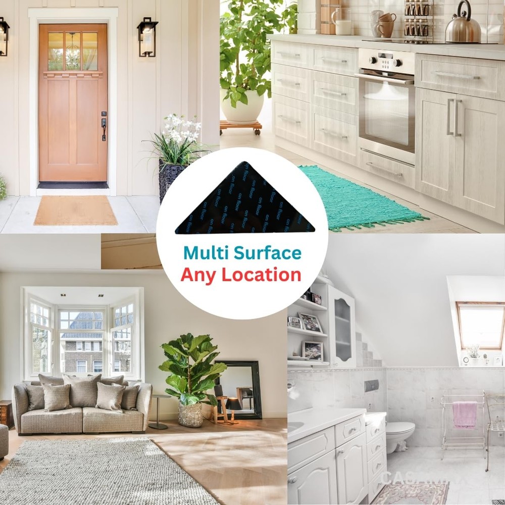 Introducing Rug Pad Grippers, designed for maximum safety and stability. These reusable, dual-sided adhesive pads keep your rugs securely in place while preventing corner curling. Washable and eco-friendly, the grippers are ideal for various surfaces, from hardwood to tiles. Available in both 8-pack and 12-pack options, they offer a simple peel-and-stick installation, blending seamlessly with your decor. Enjoy a safer, tidier home with . Non-Slip Rug Pad Grippers: Designed to securely hold area rugs on hardwood, tile, and other smooth floors, our grippers prevent rug sliding and corner curling, reducing tripping hazards and keeping rugs in place for added safety in high-traffic areas. Advanced Dual-Sided Adhesive Technology: These reusable pads feature strong grip on both rug and floor, ensuring stable placement without damaging surfaces or leaving sticky residues. Perfect for use on hardwood floors, tile floors, and laminate. Washable & Reusable for Longevity: grippers can be easily cleaned by wiping with water or washing along with the rug, maintaining excellent adhesion even after multiple uses. This eco-friendly solution reduces waste and prolongs the lifespan of your rugs. Ultra-Thin & Discreet Design: Low-profile, dual-sided pads blend seamlessly under rugs, preserving the natural look of your home decor while keeping rug corners flat. Ideal for use in kitchens, bathrooms, hallways, and living rooms. Quick Peel-and-Stick Installation: Simple peel-off design labeled for easy use; stick the grippers on rug corners, then secure them to floors. The strong bond ensures stability, making these anti-slip pads perfect for hardwood floors, tiles, and more. Versatile Gripper Pads by : Our grippers work effectively on various surfaces, including hardwood, tile, marble, and concrete. Designed for indoor and outdoor use, they prevent slipping and keep rugs stable in any setting.