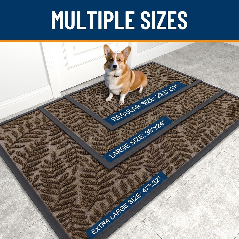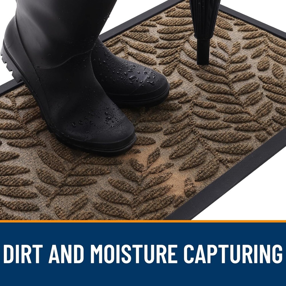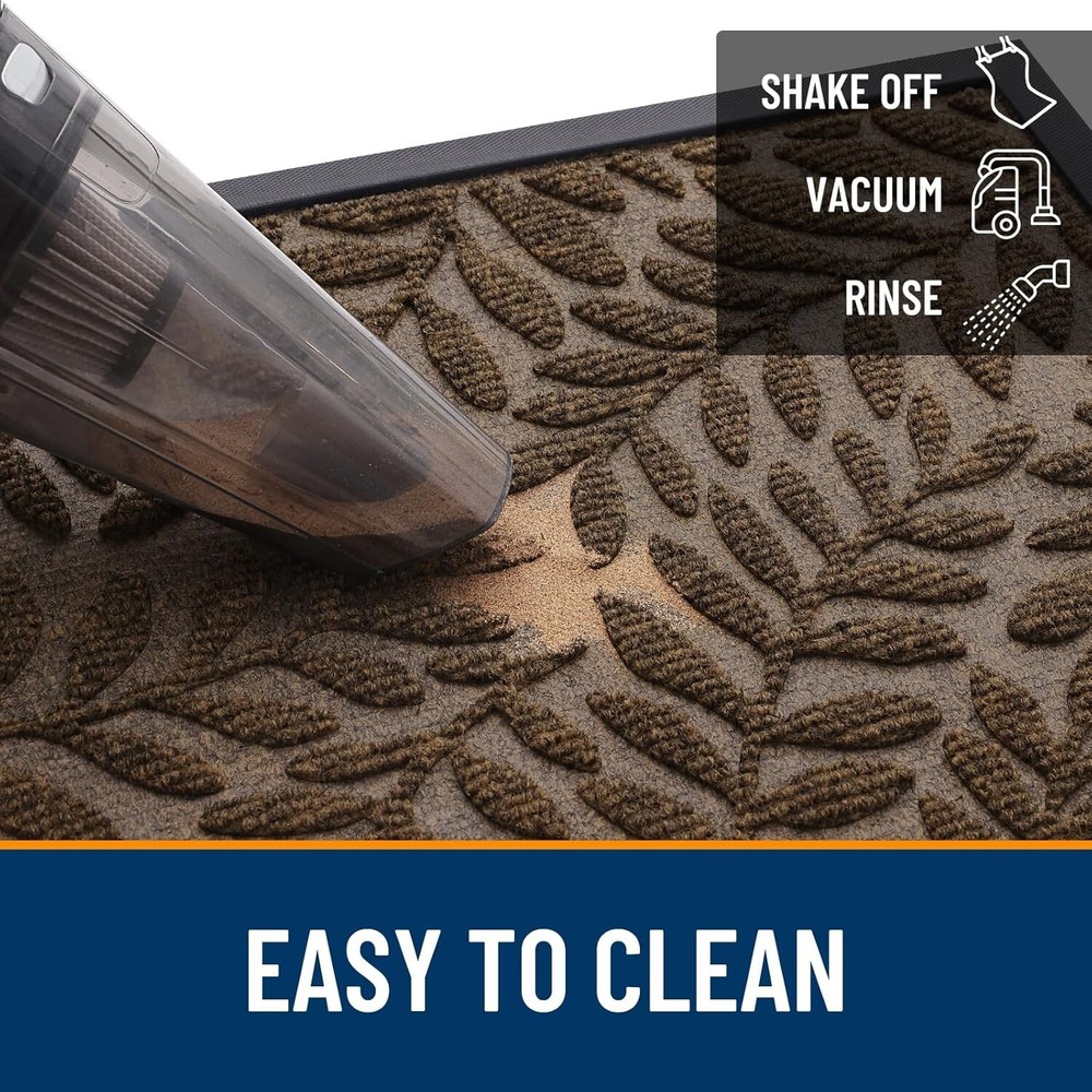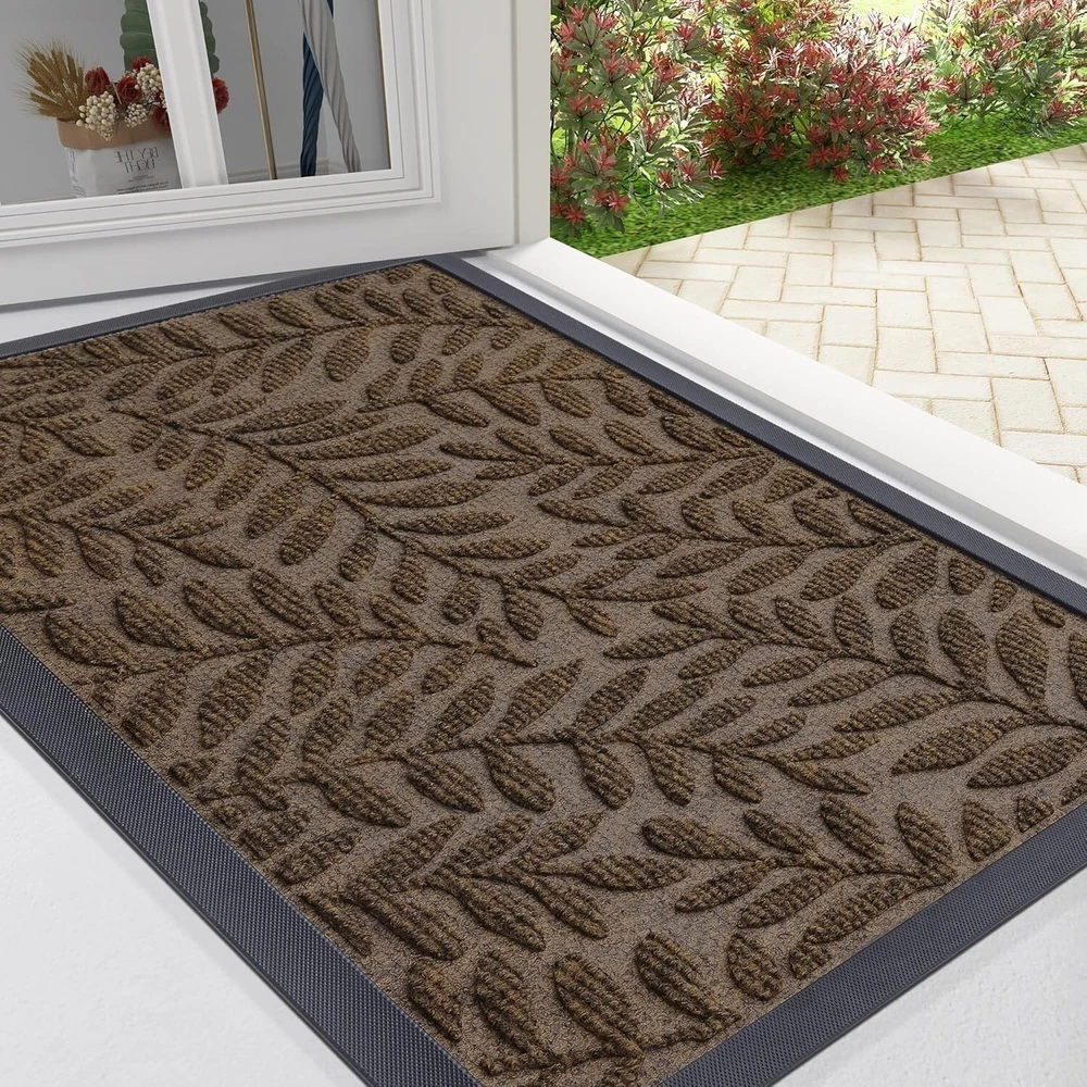 About this item [Sturdy Natural Rubber Backing] OLANLY front door entryway mat boasts a natural rubber backing ensures superior strength, tear resistance, and minimal odor, making it a durable choice for any entrance. The 0.2-inch ultra-thin design allows you to effortlessly open the door without getting stuck. [Effective Dirt and Moisture Capture] OLANLY outdoor mats feature a durable woven top surface and deep grooves to effectively capture dirt, mud, and moisture. Keep your home clean and free from unnecessary clutter while elevating the style of your entryway. [Weather-Resistant and Long-Lasting] Built to endure all weather conditions, our mats resist stains and fading from sun exposure, ensuring they look great indoors and outdoors. Perfect for year-round use, they maintain their integrity in rain, snow, and mud. [Easy to Clean] The OLANLY front door mat is designed for quick and effective cleaning using a vacuum or traditional broom cleaning methods. Additionally, tapping and shaking the back of the doormat helps remove residual debris. For a deeper clean, rinse it with a garden hose and hang the mat in a ventilated place. [Versatile Use for Every Space] OLANLY welcome mats combine style and functionality, ideal for both indoor and outdoor settings. Perfect for high-traffic areas like front doors, garages, and offices, these mats feature stylish décor and durable design that blend seamlessly into any space.
