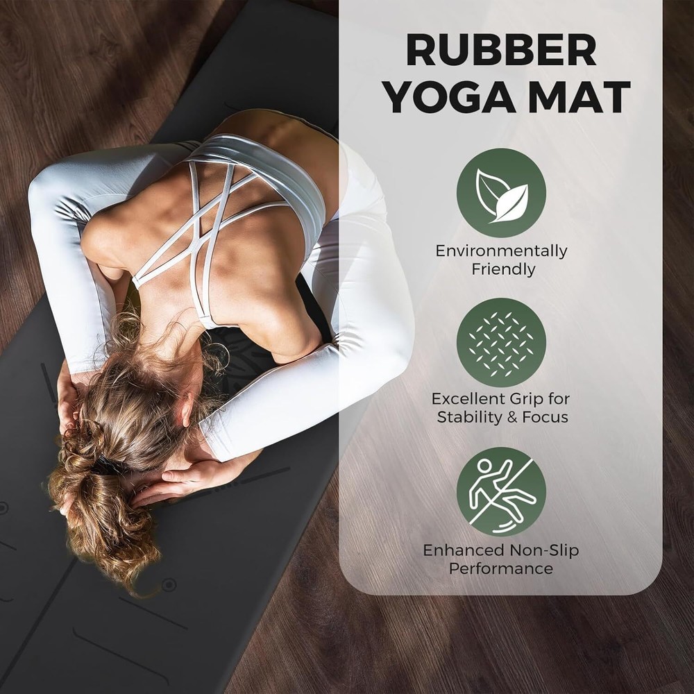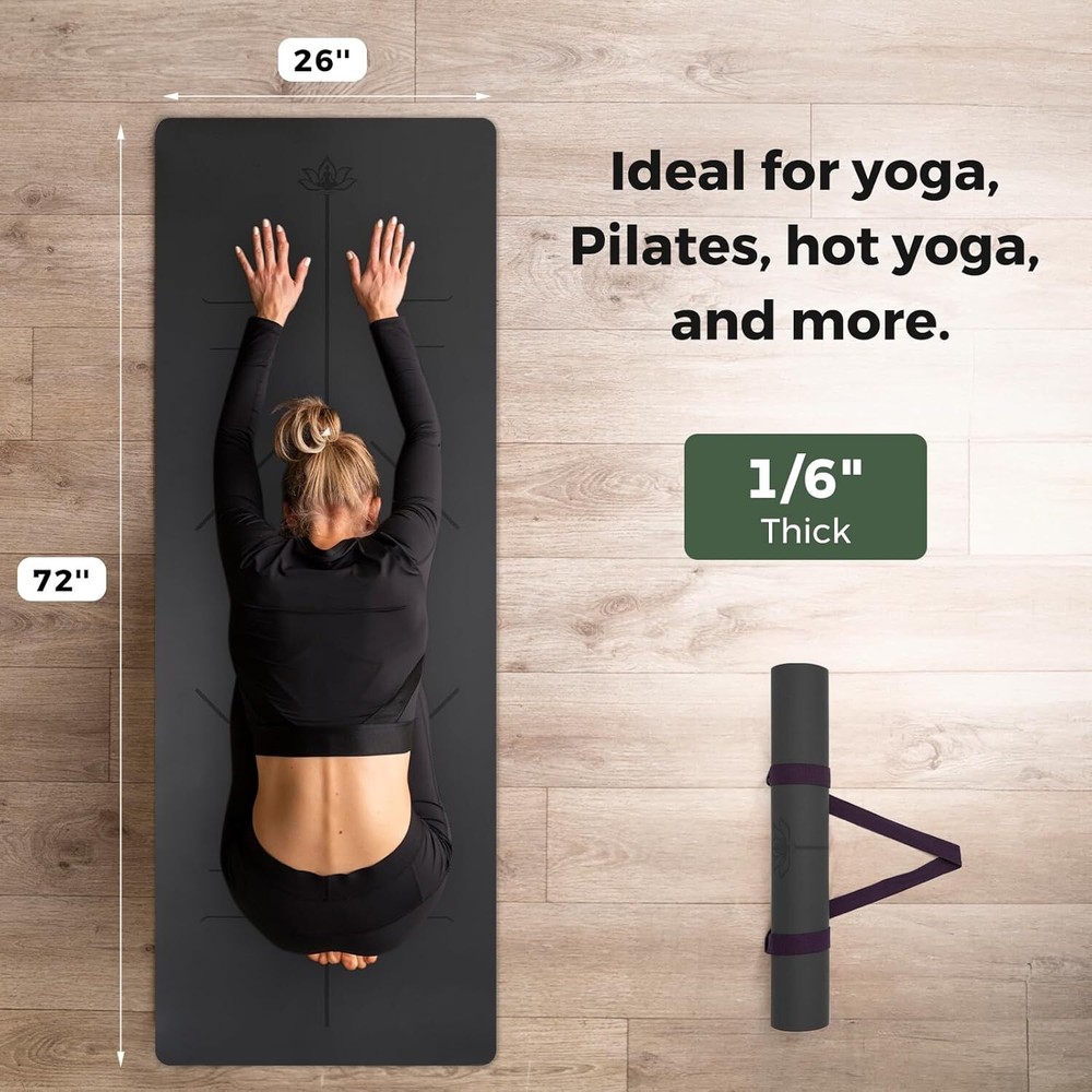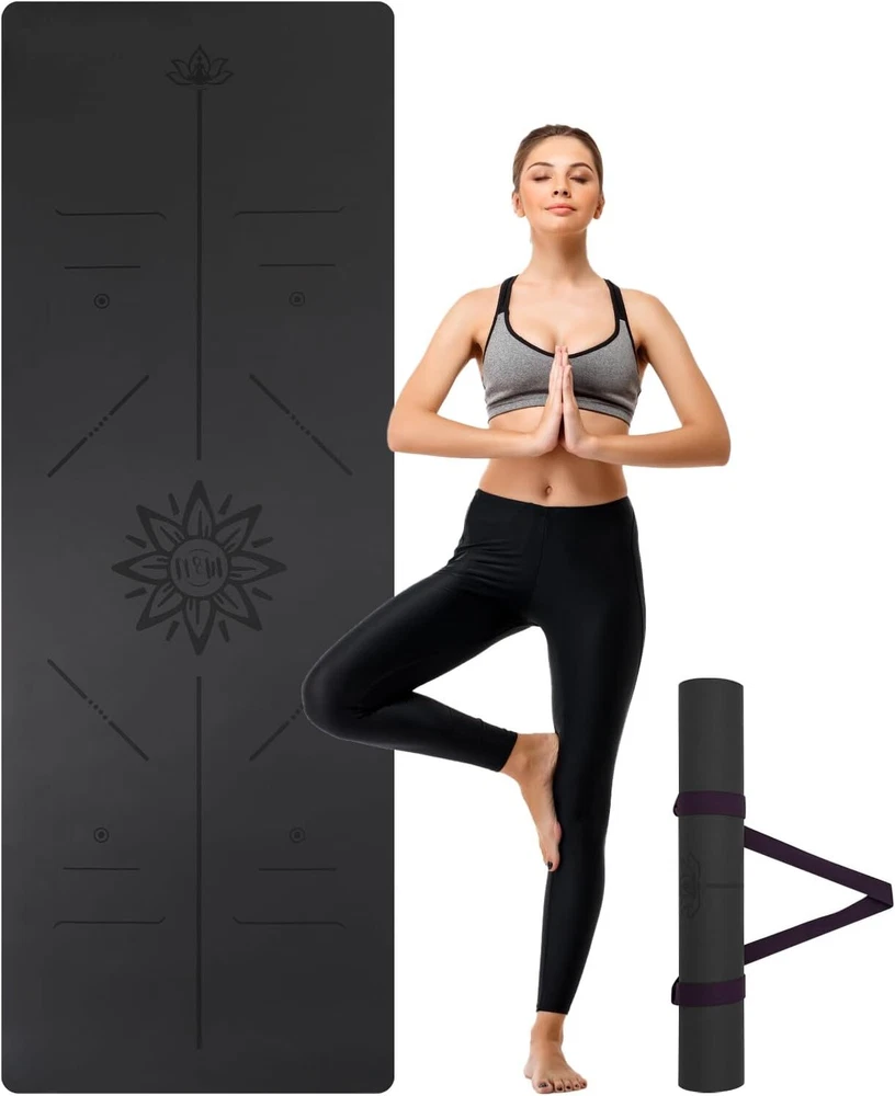 【Non-Slip Yoga Mats】Yoga Mats provide excellent grip and stability. Non-slip material keeps you steady and balanced while staying securely on the floor, they feature a non-slip coating for a stronger grip in all yoga poses 【Sweat-absorbent PU Surface】This non-slip yoga mat is made of natural rubber as the base layer, the surface layer is luxurious soft polyurethane (PU), when sweating, the PU layer can prevent slippage by absorbing sweat, the more sweat, the better the grip 【Firm Cushioning】Our padded yoga mat has a firm cushion support to help your muscles and joints feel more comfortable during intense poses whether standing or stretching on the floor 【Yoga Mats with Strap】Size: 72"x26" x1/6" Weight: 6.6lbs The yoga mat is portable with the included carrying strap, providing you an easy way to carry your mat to the gym or yoga studio 【Care instructions】Please recommend cleaning once before the first use,The non slip yoga mat can be kept hygienic by simply wiping it with a damp cloth or washing it with mild soapy water,and lay flat to dry. Do not use a washing machine or dryer or exposed to the sun for extended periods of time