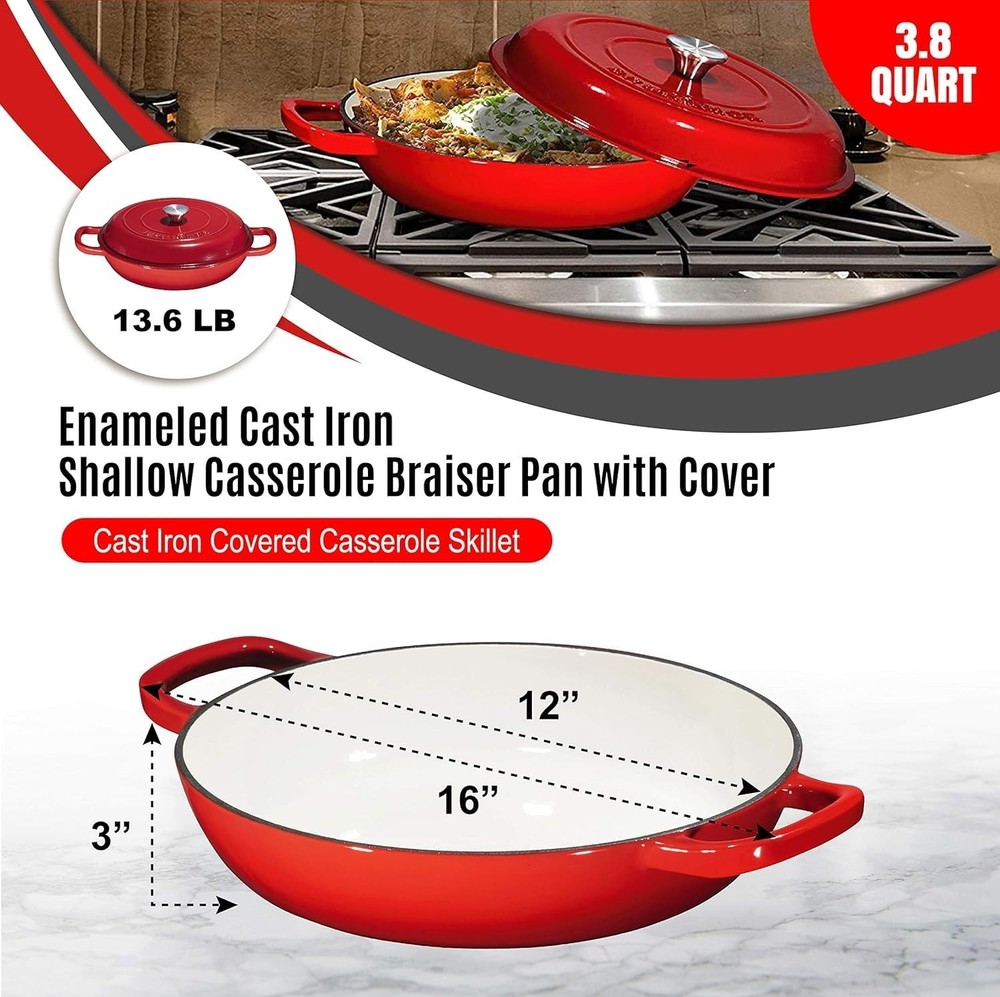 $ 36.946 QT Enameled Cast Iron Dutch Oven with Dual Handles & Lid