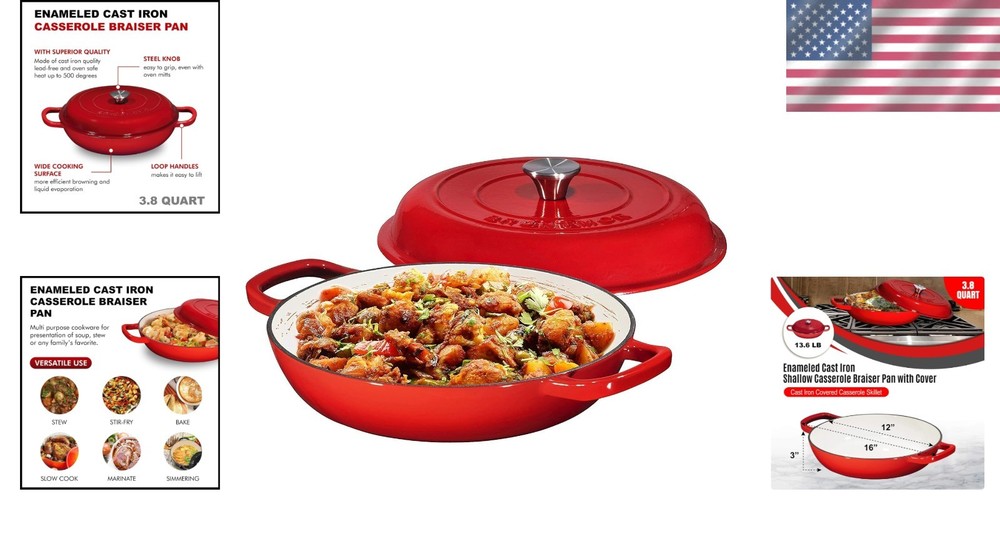 Non-Stick Enameled Cast Iron 3.8 Quart Dutch Oven - Elegant Gradient Red Finish ‹ › ‹ › ‹ › ‹ › ‹ › ‹ › ‹ › ‹ › ‹ › ‹ › ‹ › Non-Stick Enameled Cast Iron 3.8 Quart Dutch Oven Elegant Gradient Red Finish Features: Generous 3.8 quart capacity, perfect for soups, stews, and roasts. Doubles as a braiser pan for baking or frying meals with effortless elegance. Designed for slow, even heat, maintaining a consistent temperature for hearty dishes. Compatible with all cooktops: gas, electric, ceramic, and induction, with an oven-safe rating up to 500°F. Features a smooth, acid-resistant enamel interior that is non-reactive and extremely easy to clean. An eye-catching gradient red finish, adding both charm and style to your kitchen. Benefits: Reliable performance for daily cooking, perfect for both novice and seasoned chefs. Even heat distribution ensures perfectly cooked meals every time. Ideal for one-pot family dinners, simplifying meal prep. Stain-resistant and odor-free; a pleasure to clean and maintain. Elegant design enhances kitchen aesthetics while being functional. Why choose our Dutch Oven? This Non-Stick Enameled Cast Iron Dutch Oven is more than just a cooking vessel; it’s a beautiful and functional centerpiece for your kitchen. Its elegant gradient red finish combines style and performance, perfect for impressing guests or elevating your home-cooking experience. Whether you are slow-cooking a comforting stew or baking a delicious bread, trust this dutch oven to deliver mouth-watering results while making cleanup a breeze. Elevate your culinary adventures and experience the fusion of elegance and practicality – order your Non-Stick Enameled Cast Iron Dutch Oven today! Shipping Free & Fast Shipping - We offer free shipping to most of the USA with a normal delivery time of 3-7 days. However, due to the current situation, additional delivery time (up to 3 weeks) may be required for some items. Alternative Carriers - We may use alternative carriers (e.g. USPS, FedEx, UPS, etc.) to ensure your package arrives safely and on time. Due to the use of multiple carriers, we are unable to provide a tracking number automatically. Handling Time - Orders are processed and shipped within 1-2 business days of receiving cleared payment. Shipping Restrictions - Shipping to Alaska, Hawaii, Puerto Rico, Guam, and other US territories may incur shipping charges or delivery restrictions. Please contact us before ordering, or your order can be refunded/cancelled. State Restrictions - There may be restrictions based on your state of purchase. For example, certain items may not be shipped to California due to state regulations. Contact for Tracking Updates - If you require tracking updates or have any concerns about the delivery of your order, please feel free to contact us, and we will be happy to assist you. Return 30-Day Hassle-Free Returns - We want you to be completely satisfied with your purchase. If you are not, you can return the item within 30 days of receiving it for a full refund or exchange. Easy Return Process - To start a return, simply contact us and we will provide you with a prepaid return shipping label and detailed instructions. Restocking Fee - There are no restocking fees for returns. However, the buyer is responsible for return shipping costs if the return is not due to a seller's error. Refund Processing Time - Refunds will be processed within 5 business days of receiving the returned item in its condition. Payment We accept all major credit cards, PayPal, and Apple Pay for your convenience. Your payment information is secure and encrypted to ensure a safe and seamless transaction. Please complete your payment within 3 days of purchase to avoid any delays in shipping. Feedback Your feedback is extremely important to us. We strive to provide the best products and customer service possible. If you are satisfied with your purchase, please take a moment to leave us a positive review. If you have any concerns or issues with your order, please contact us before leaving negative feedback. We are committed to resolving any problems and ensuring your satisfaction. Contact Us If you have any questions or concerns, please feel free to out to our customer support team. You can contact us through the eBay messaging system. We are available Monday to Friday, 9:00 am to 5:00 pm EST, and we will do our best to respond to your inquiry within 24 hours. Buy it now and enjoy a pleasant shopping experience! Item Diameter: 14.29 Capacity: 3.8 quarts Item Width: Dutch Oven Item Length: Dutch Oven Item Weight: 12.35 ounces Heat Resistance: 500°F Item Depth: 3.31 inches Unit Quantity: 1 Stove Type Compatibility: Electric,Gas,Induction,Ceramic Set Includes: Lid Material: Cast Iron Features: Easy to Clean,Oven-Safe,With Lid Type of Oven: Electric,Gas,Induction Type: Dutch Oven Color: Gradient Red Surface Coating: Enameled Shape: Round Number of Items in Set: One-Piece Unit Type: Unit