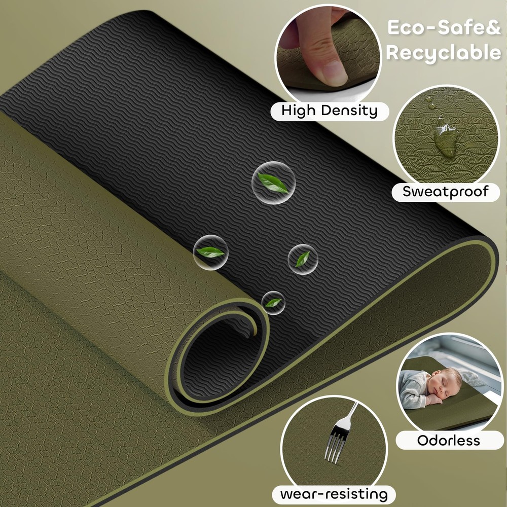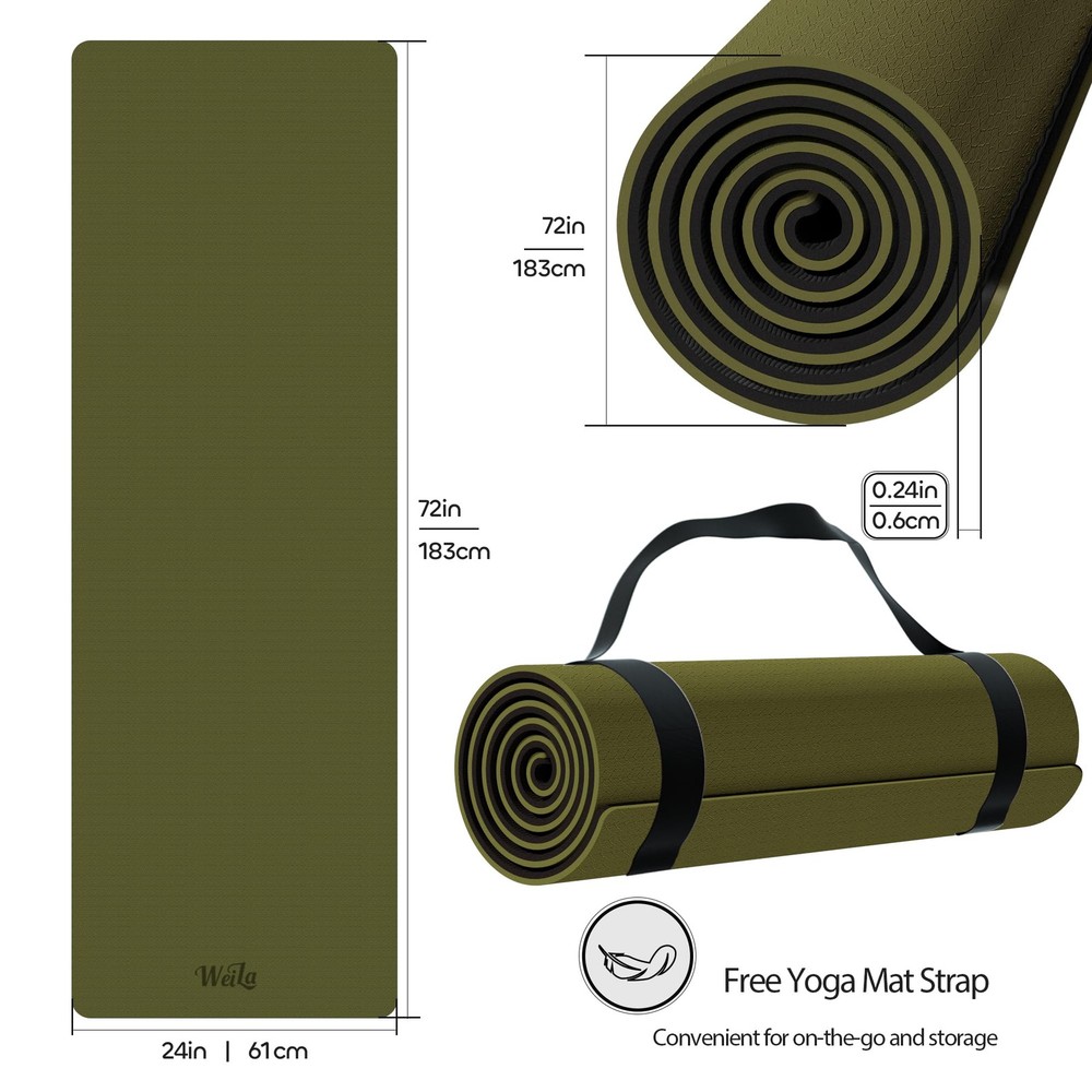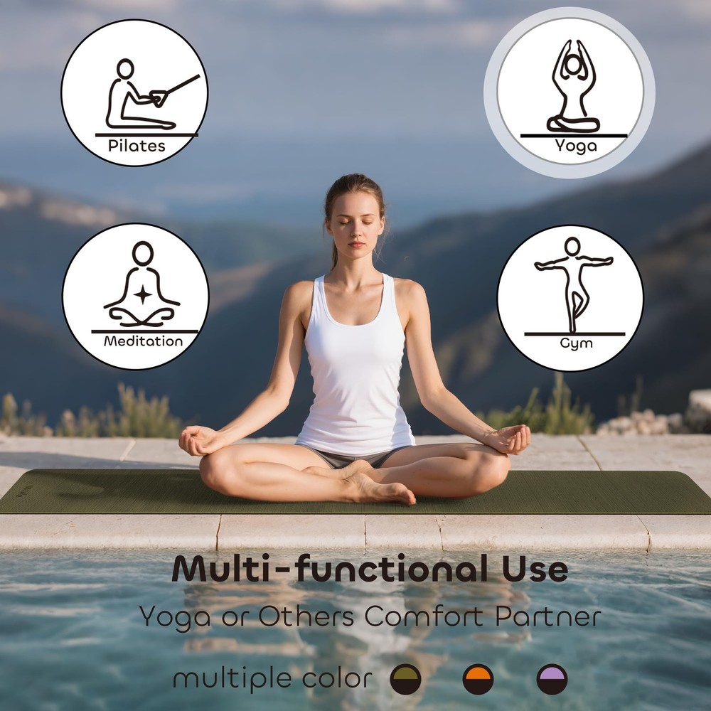 Welia 6mm TPE Yoga Mat with Dual-Sided Non-Slip Textures – Superior Comfort & Responsive Cushioning for All-Level Yogis. Ideal for Yoga, Pilates, Strength Training, and Camping. The snake-patterned front grips sweaty palms in hot yoga, while the wave-textured back stabilizes strength training. Eco-Friendly, SGS-Certified SGS certified odourless TPE, Lightweight with Easy-Clean Surface. 24'' Wide Anti-Tear Design for Women, Seniors, and Beginners. 3 Dual-Color Options (Orange/Black, Green/Black, Purple/Black). Eco-Friendly & Low Odor, SGS Certified:Made with glue-free TPE technology, ensuring minimal chemical smell and safe use for sensitive users. Non-absorbent surface resists sweat and dirt – simply wipe clean with a damp cloth for instant drying. Premium TPE Material with Dual-Sided Textures: Features snake patterns on the front and wave textures on the back for 360° non-slip grip during yoga, Pilates, or high-intensity workouts. The 6mm thickness provides cushioning for joints while maintaining stability. Superior Comfort & Adaptive Resilience for All Levels: 6mm yoga mat delivers responsive cushioning that supports joints during gentle stretches or intense flows. The balanced rebound adapts to beginners mastering poses, advanced yogis holding balances, and seniors seeking gentle workouts. Anti-Tear & Multi-Functional: Reinforced anti-tear structure withstands intense strength training, pilates, editation, or daily home workouts. Lightweight yet durable for portability between studios, gyms, and outdoor camping adventures. Free yoga mat with strap,convenient for on-the-go and storage. Stylish Dual-Color Reversible Design: Choose from 3 bold color combos (Orange/Black, Green/Black, Purple/Black) to match your style. Flip the mat to switch between vibrant hues or subtle tones for varied workout vibes.
