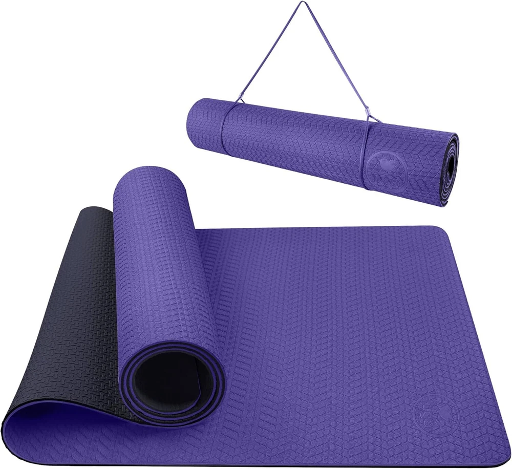 Grippy not Slippy: yoga mat has double-sided non-slip surfaces so you can perform any movement with confidence. Exclusive designed "Bone" pattern underside helps yoga mat non slip on the floor. The subtly textured surface prevents hands and feet from slipping out of position so you can hold poses no matter how vigorous your practice gets. Middle-layer Mesh for Durability: Unlike other double-sided yoga mats, textured surface hot yoga mat adds middle-layer mesh to provide better tear resistance, which is designed to enhance the durability and the quality of yoga mat thick for your practice. SGS Certified Material: TPE is the latest technological improvement to the traditional yoga mats. It's made of SGS certified TPE material, no latex, no PVC. Unlike other brands' cheap & traditional PVC, NBR or EVA yoga mats. Lightweight, Free Carry strap: Weighing in at 2 lbs, our yoga matt with free carrying strap is portable for travel. Most exercise mats are either too thin or too thick. 1/4" mats are guaranteed to provide the optimal level of cushion and protection for your joints and knees while still allowing you to grip the floor for balance poses. Care Instruction: First, wipe the yoga mat with a towel dipped in cold water and a mild detergent, then clean the detergent with a towel dipped in cold water. Place the yoga mat in a cool and ventilated place to dry. Pls do not expose to sun for a long time.