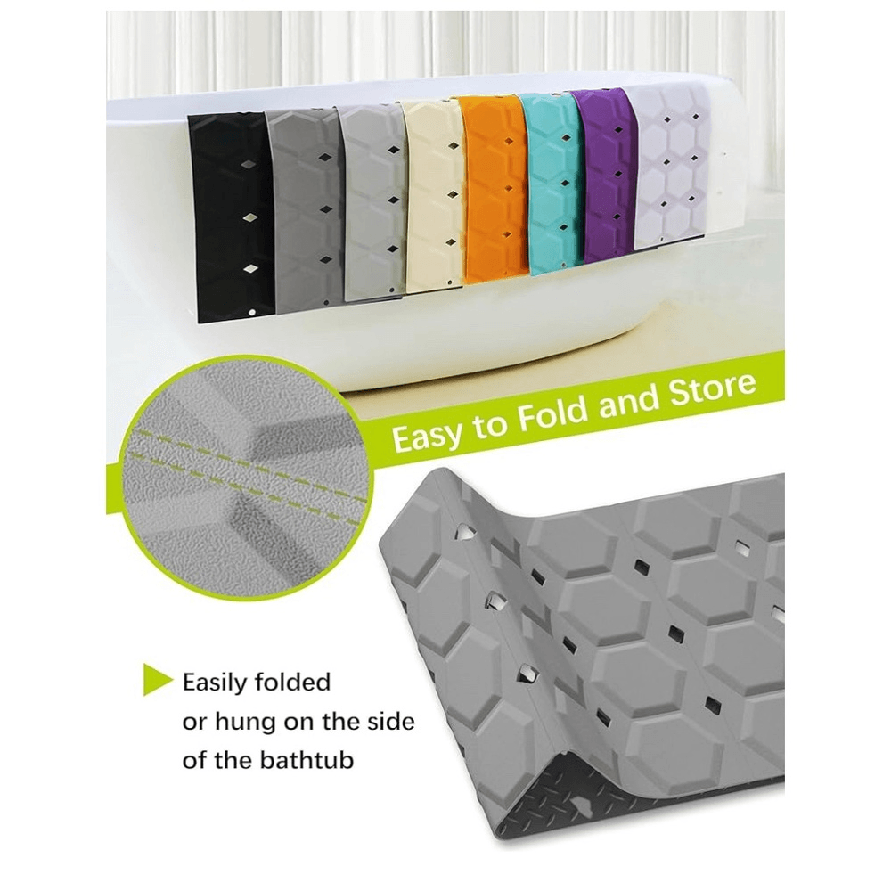 【Non-Slip Bathtub Mat】Flex-Whol bathtub mat back with non-slip leaves pattern design, without suction cups, which also increases friction with the bottom of the tub. When bathing, for the elderly, children and adults using anti slip shower mat can reduce the risk of slipping 【Safe and Durable to Use】Our non-slip bath mat is made of silicone material, it's soft, comfortable, BPA-Free, safe, odorless, durable. Tub mat is foldable space saving, also convenient to travel to carry out. The surface of the tub mats non slip is made up of hexagons and non-slip texture. Gives bathers a pleasant touch and enhances bathing comfort 【Bathtub Mat Size】Shower Mats size 28 x 14 Inch, can be used in most bathtubs or used inside the bathroom. Not only can it be used inside the bathtub, but also beside the bathtub, shower floor, and so on. Shower mat suitable for non-smooth, textured, clean surfaces 【Quick Drain】Shower mats for inside shower has large diamond shaped drainage holes so that the suds and water can drain away quickly. Drainage hole back and hanging hole back have edge wrapping design to make tub bath mat more durable and less prone to damage and breakage 【Easy to Clean】After bathing, rinse with water and hang by the bathtub to dry.And also machine washable, wash it gently with cold or lukewarm water, can not machine dry it, dry it in a draught place. WARNING: Do not jump on the bath mat - may cause slipping