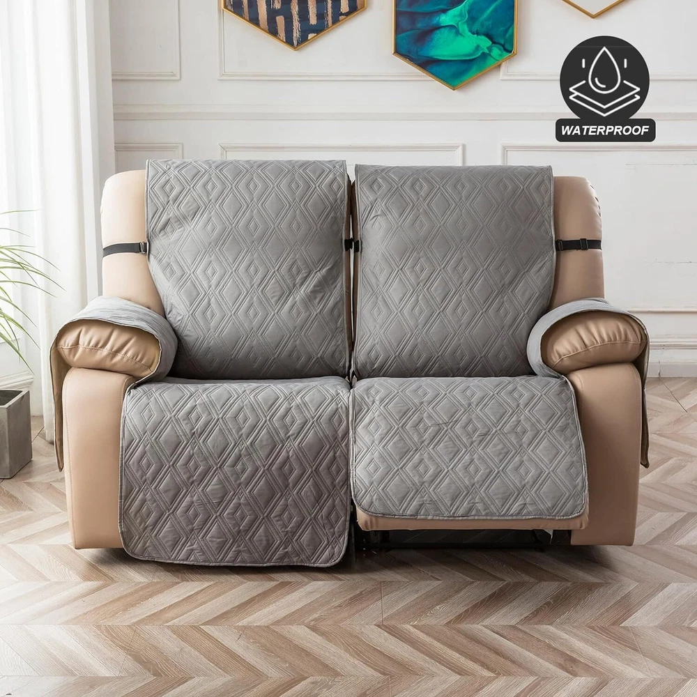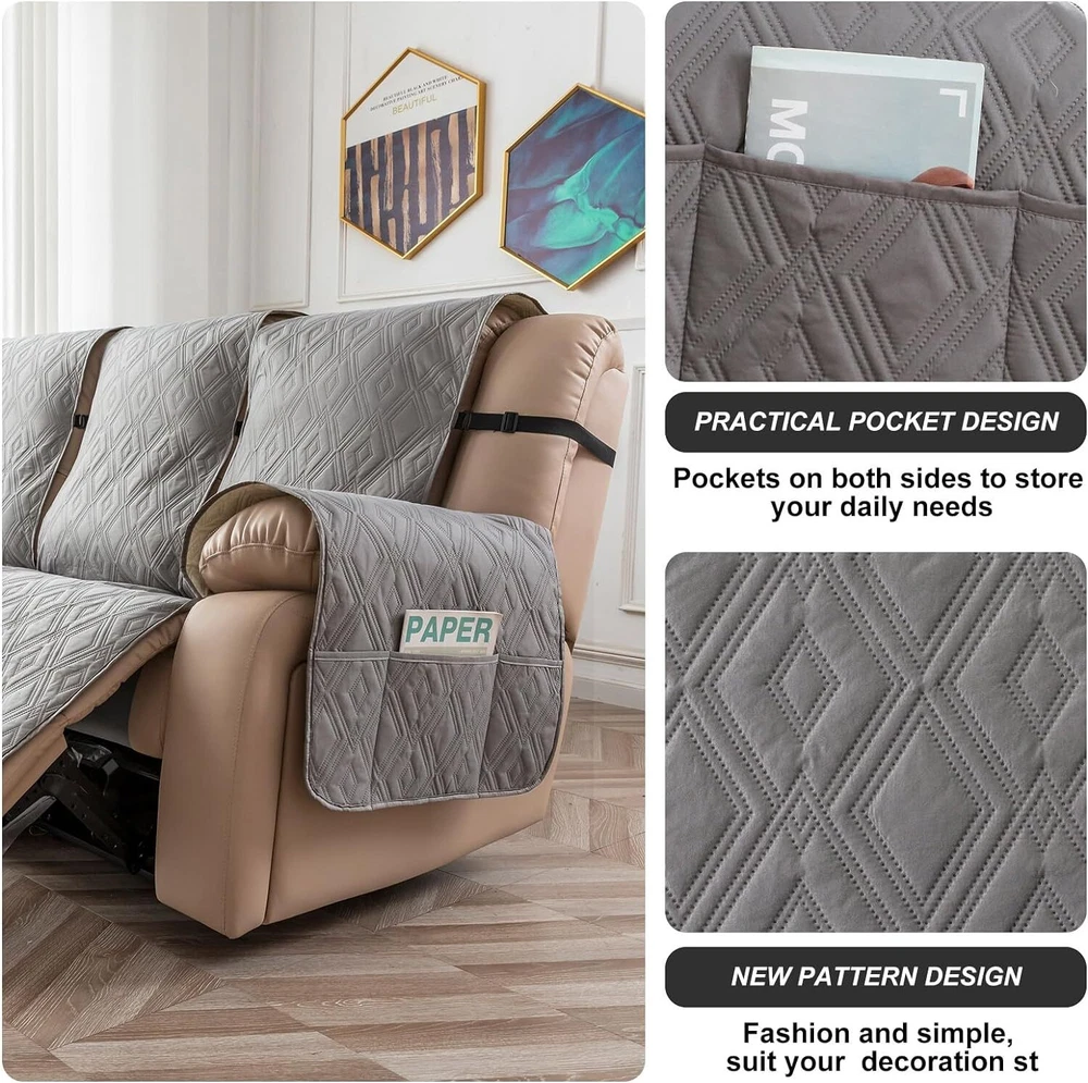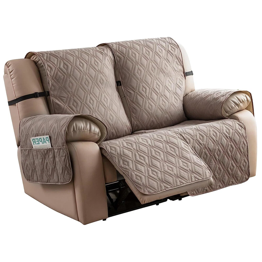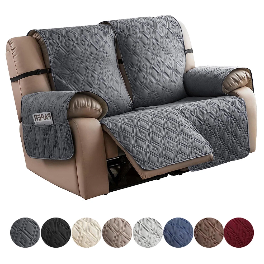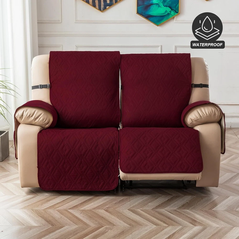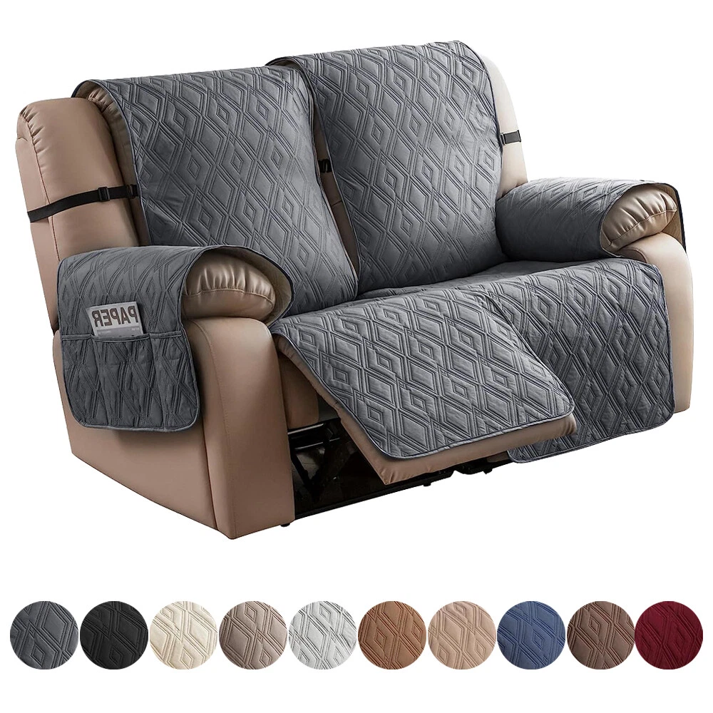 Stay in Place Anti-Slip Stay-in-Place Design: The reclining couch covers backrest and seat are designed separately, making it more fitting for your couch, staying in place. Each piece of recliner couch cover has a circular silicone rubber anti-slip design on the back, and is equipped with elastic bands and anti-slip buckles for double-layer reinforcement, not easy to slide. Water-Resistant & Durable: The durable sofa covers for 2 cushion couch consists of 4 layers of quilted fabric, thick microfiber, and thick poly foam filling for extra comfort and softness. 100% waterproof, protects your recliner furniture from everyday wears and tears, leaks and stains. Dimension Guide: The recliner couch protectors loveseat fits a seat width of 48 in. (2 pieces design, 23" per seat size). Recliner sofa covers 3 seat fits a seat width of 72 in. (3 pieces design, 23" per seat size). Please measure before purchasing, see measuring guide in photo. Furniture Protector: Sofa covers reclining are perfect for protecting your furniture from kids, scratches and fur from pets, dogs or accidental leaks. The unique diamond pattern design of recliner couch covers 2 seat gives your old furniture brand new look. Installation & Care: Couch covers for reclining couches installation is effortless. Please refer to our 2 seat recliner covers detail page for the installation guide to ensure a perfect fit. Machine washable, gentle wash, do not bleach and iron.